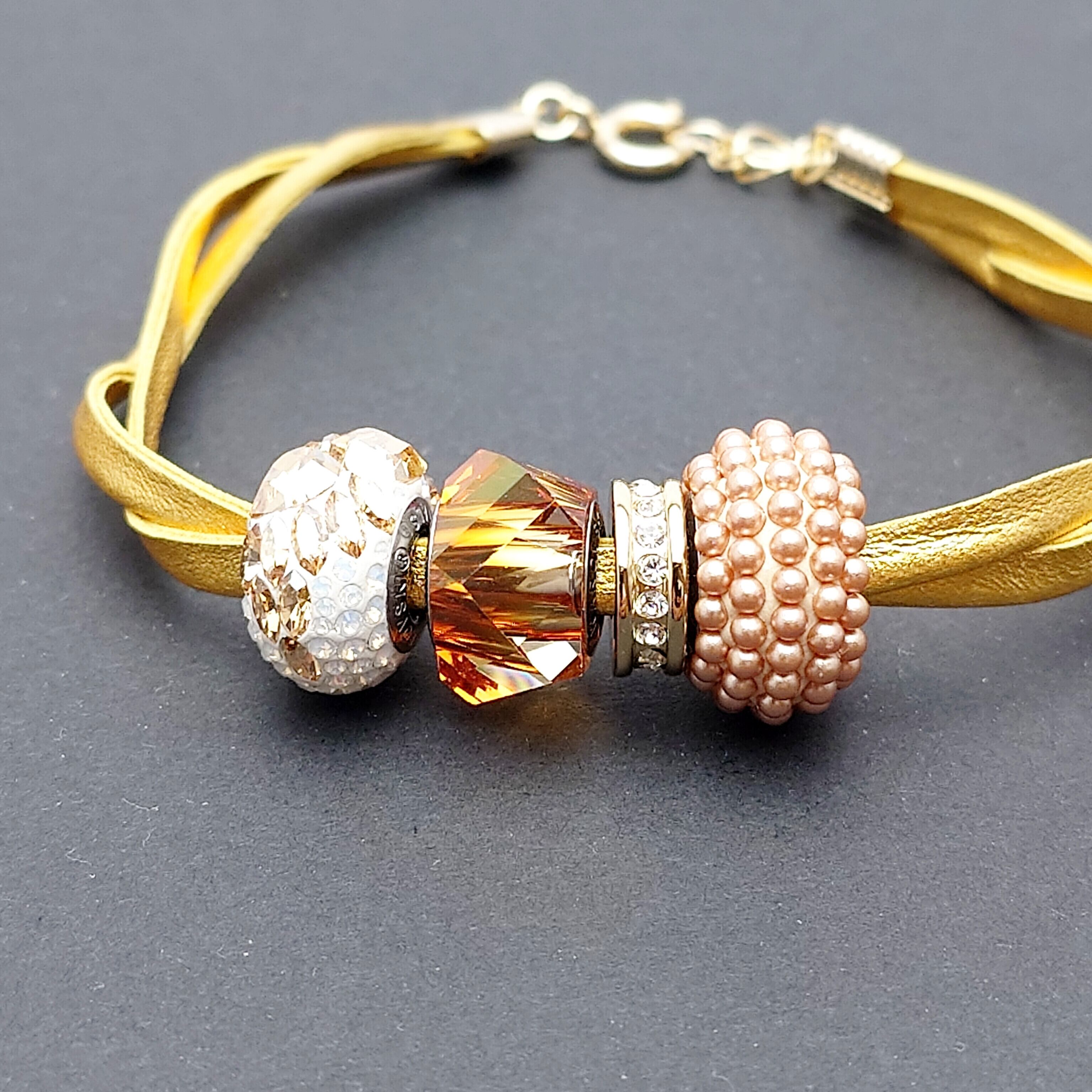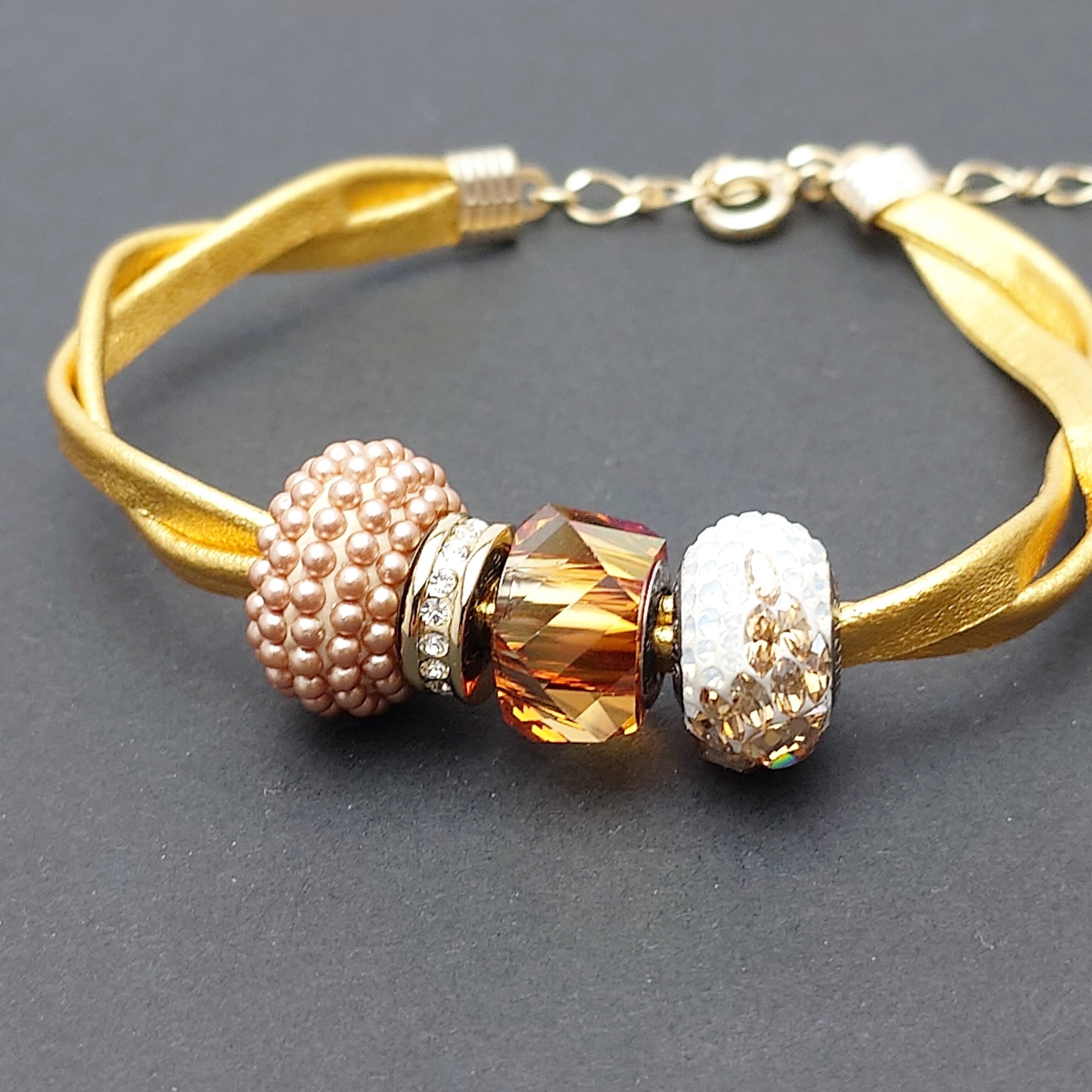 このブレスレットは、上質なスワロフスキーと純金箔を組み合わせた贅沢なデザインで、身に着けることで特別な気分を演出します。