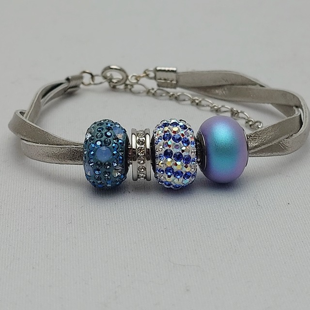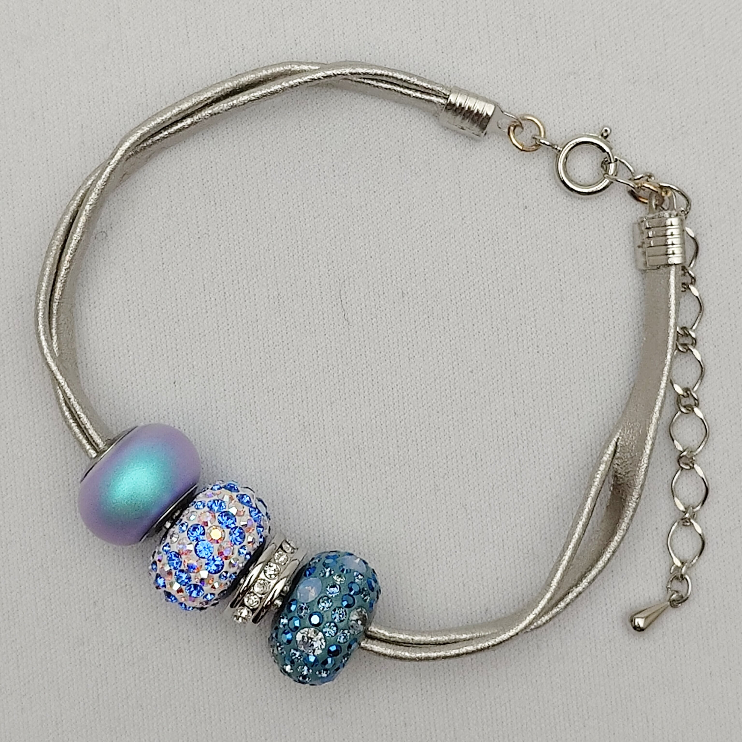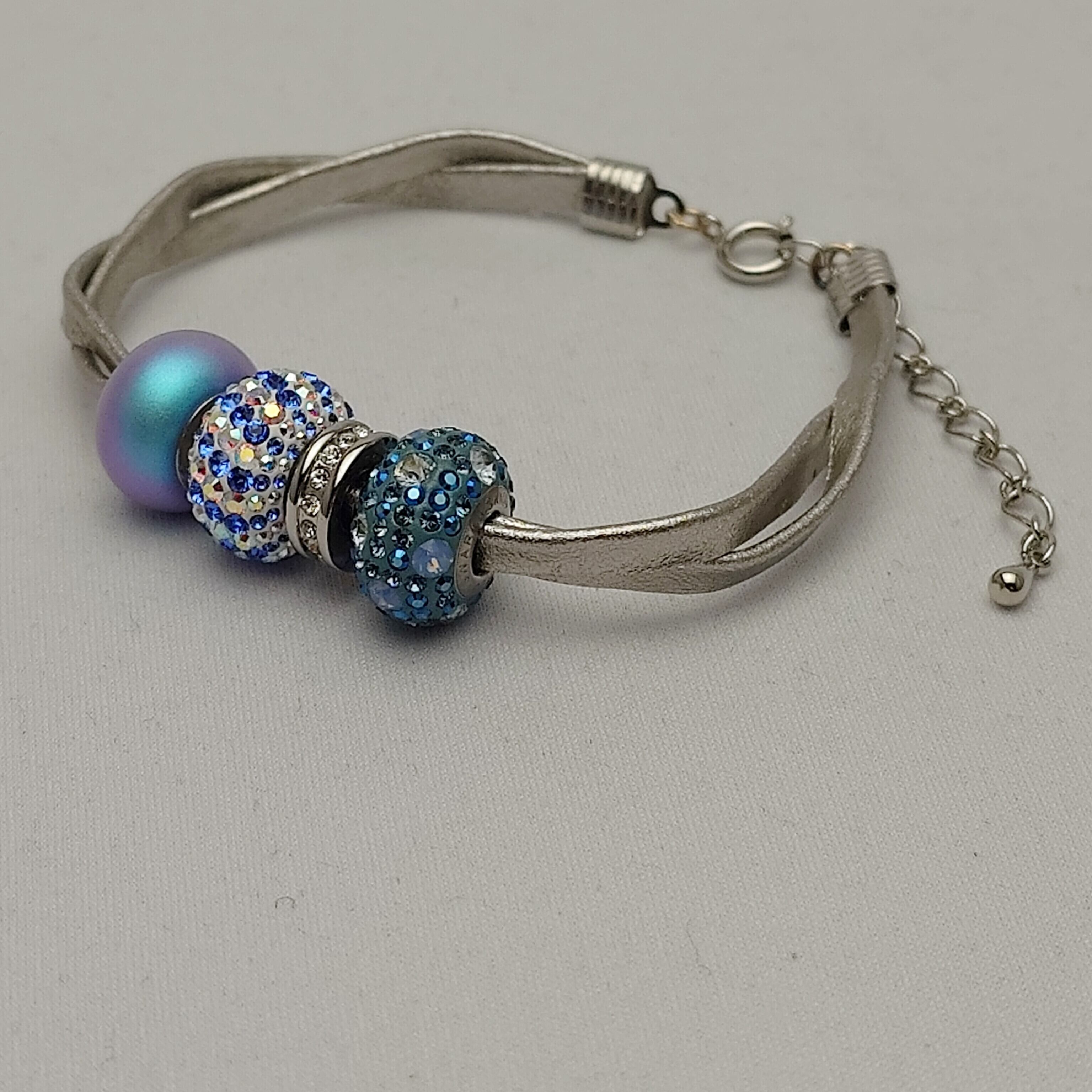 プラチナ箔を施した、エレガントで華やかな三つ編み&スワロフスキー・ブレスレットです。