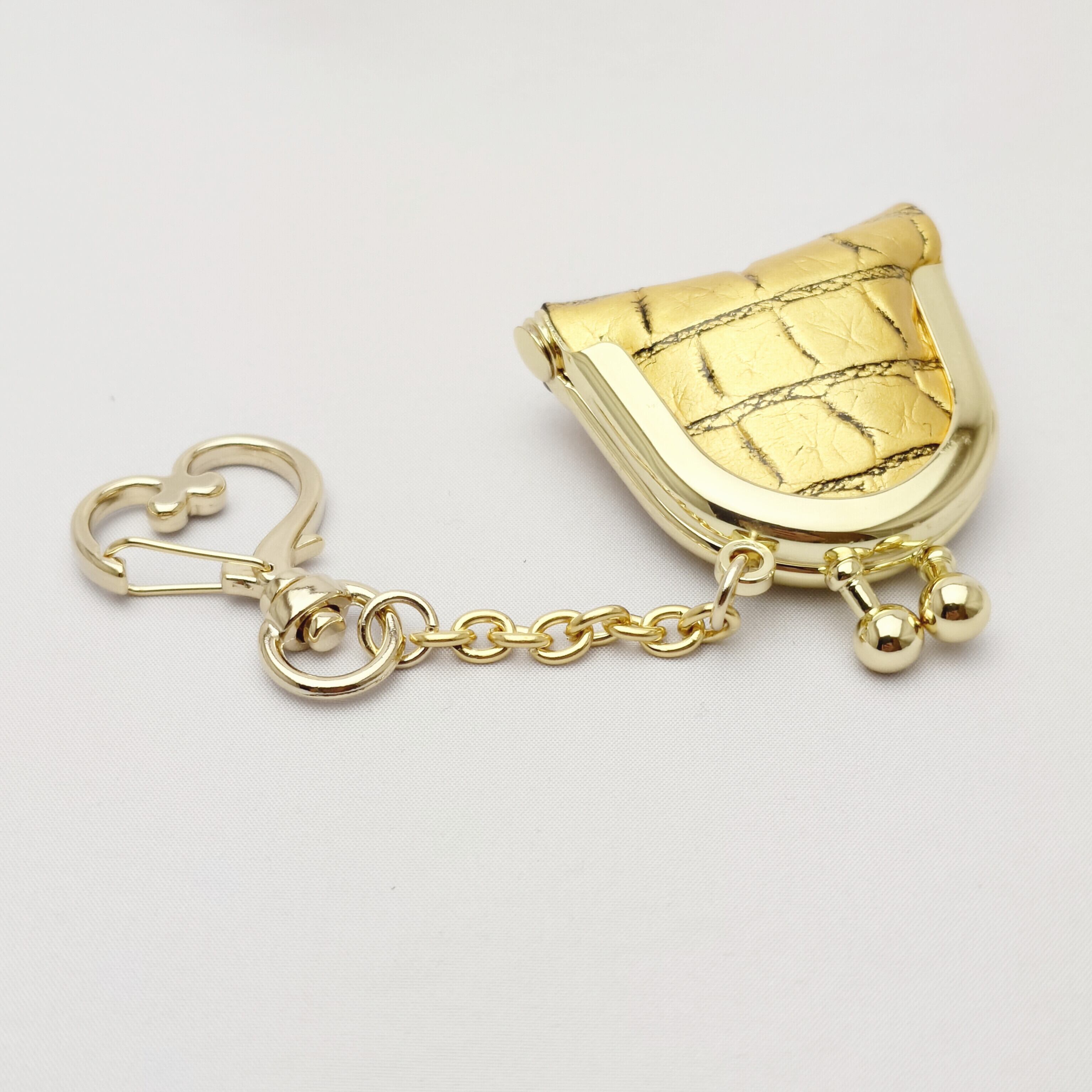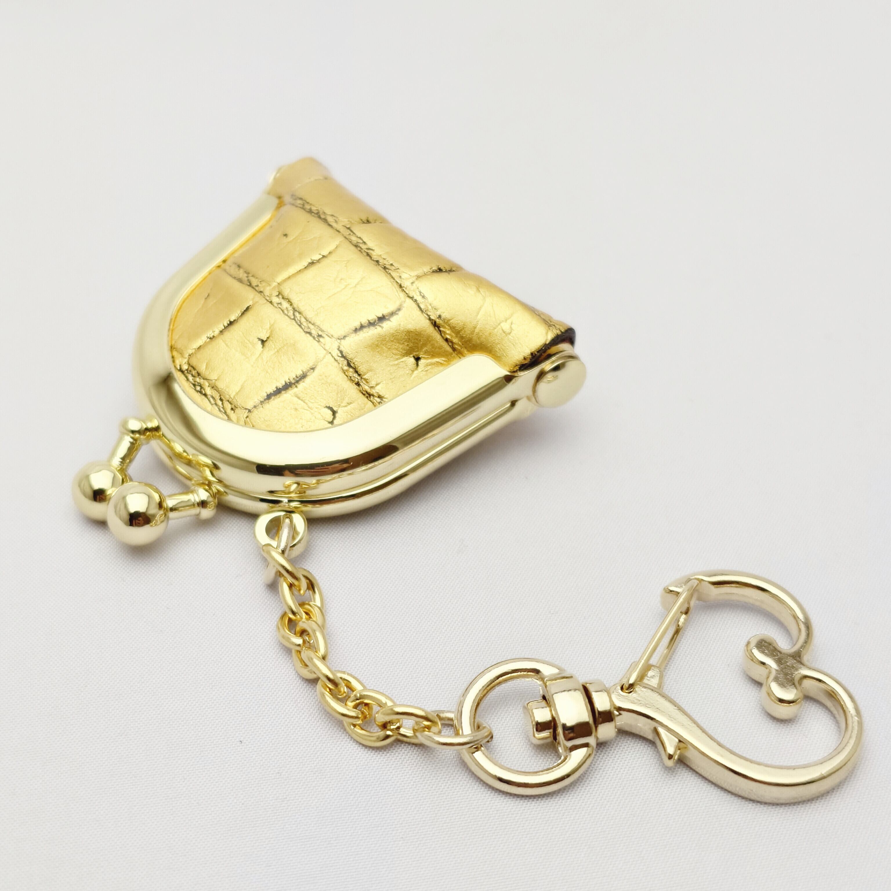 本物のクロコダイルにK24金箔を施したミニがま口です。