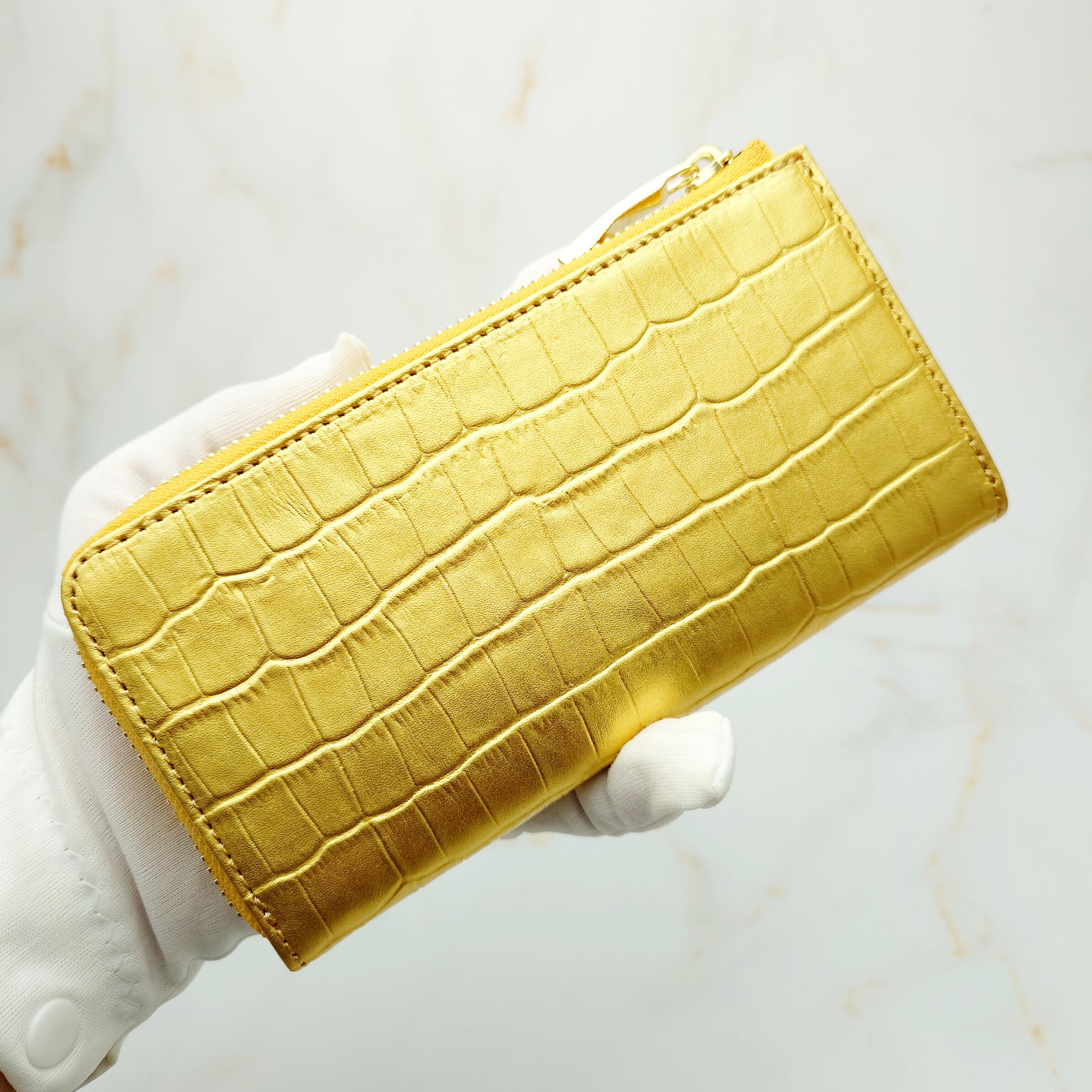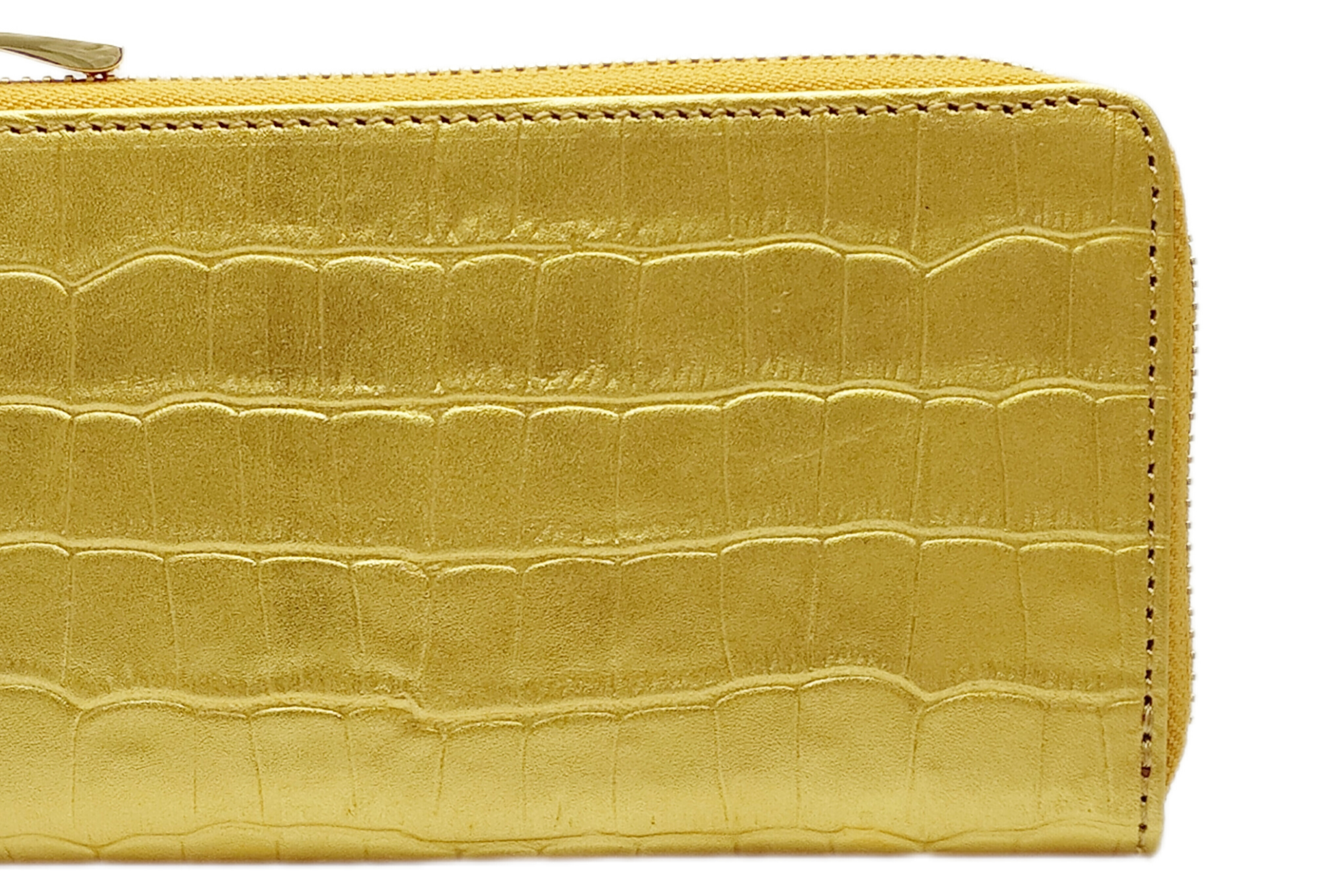 K金箔が施されたクロコダイル柄は、その美しさと力強さが特徴です。