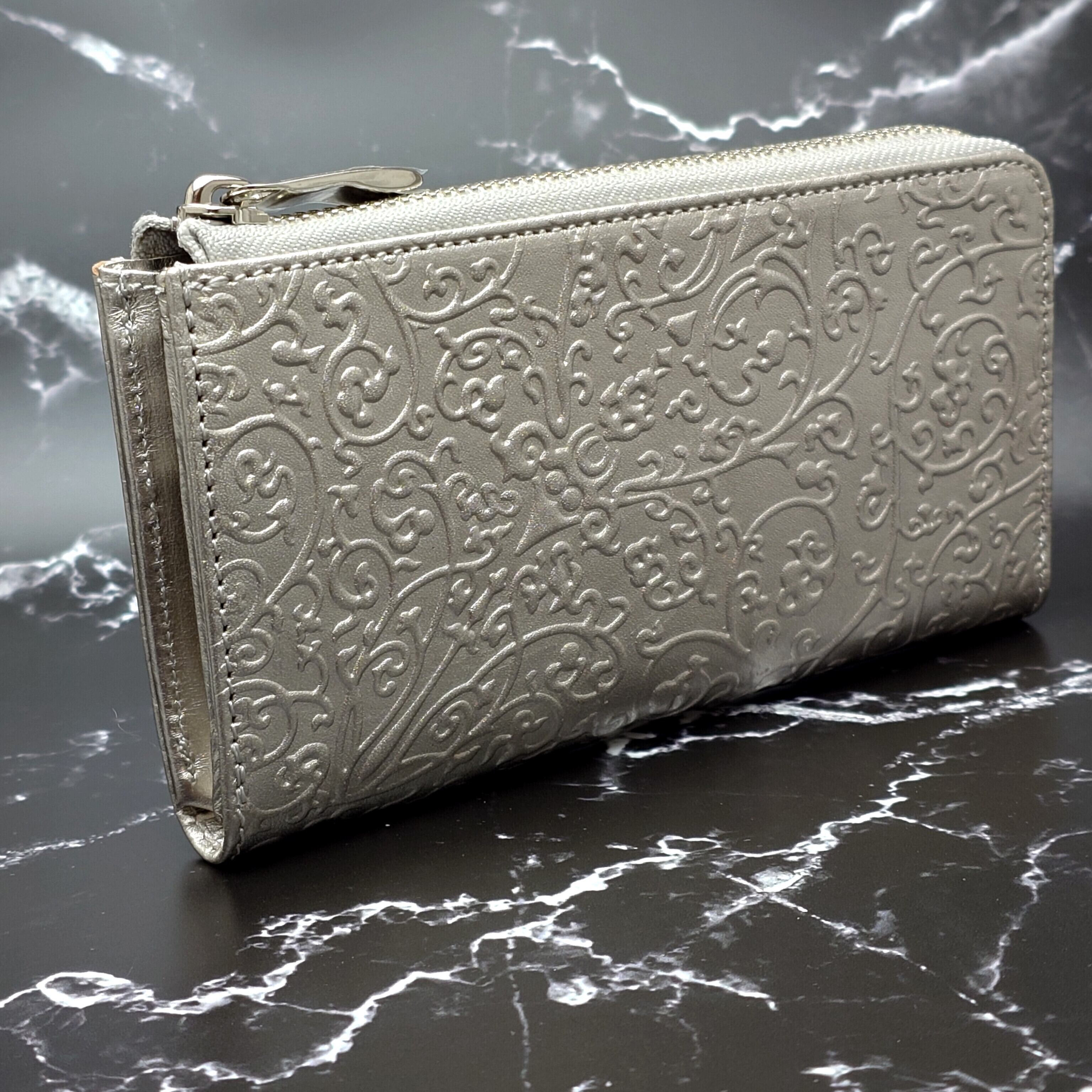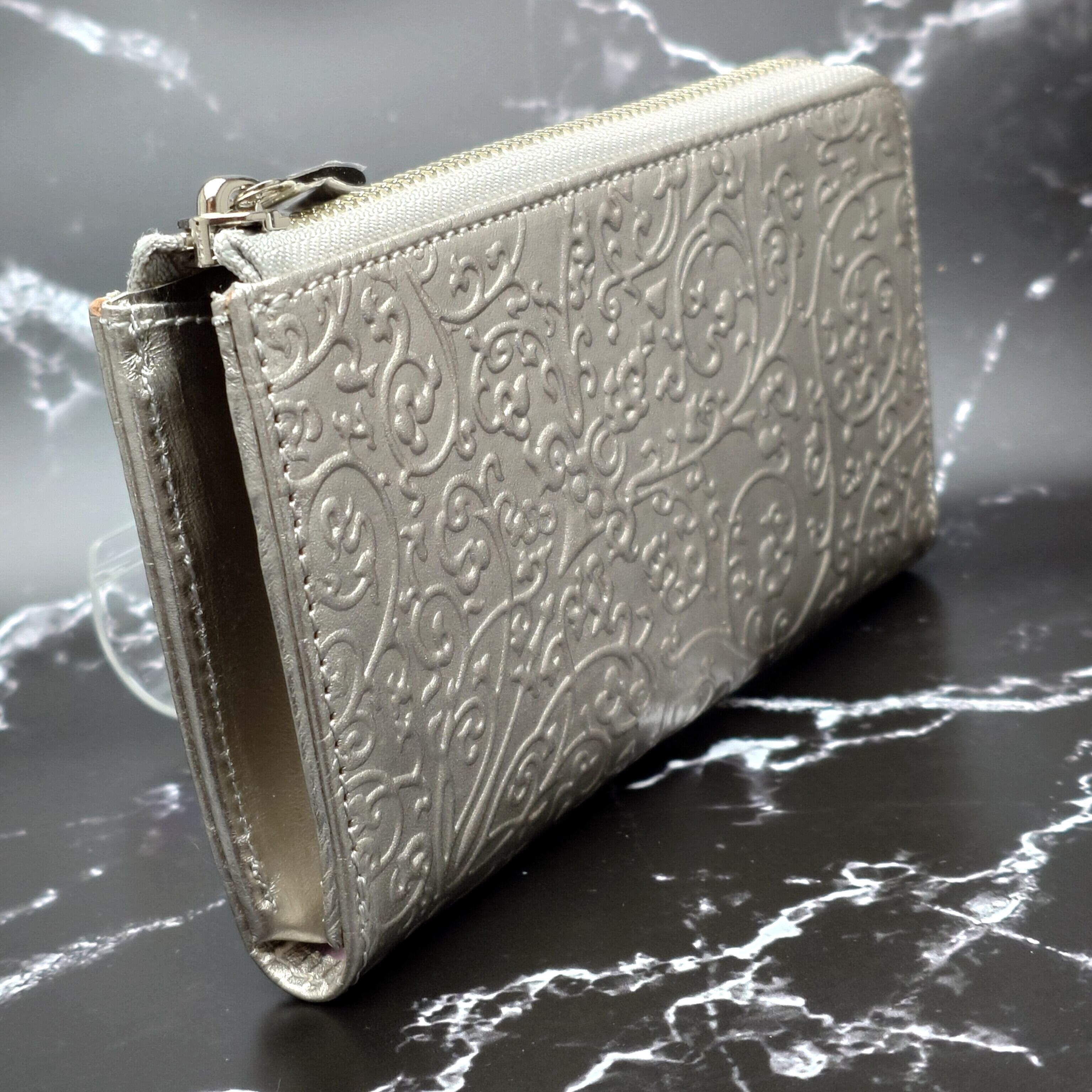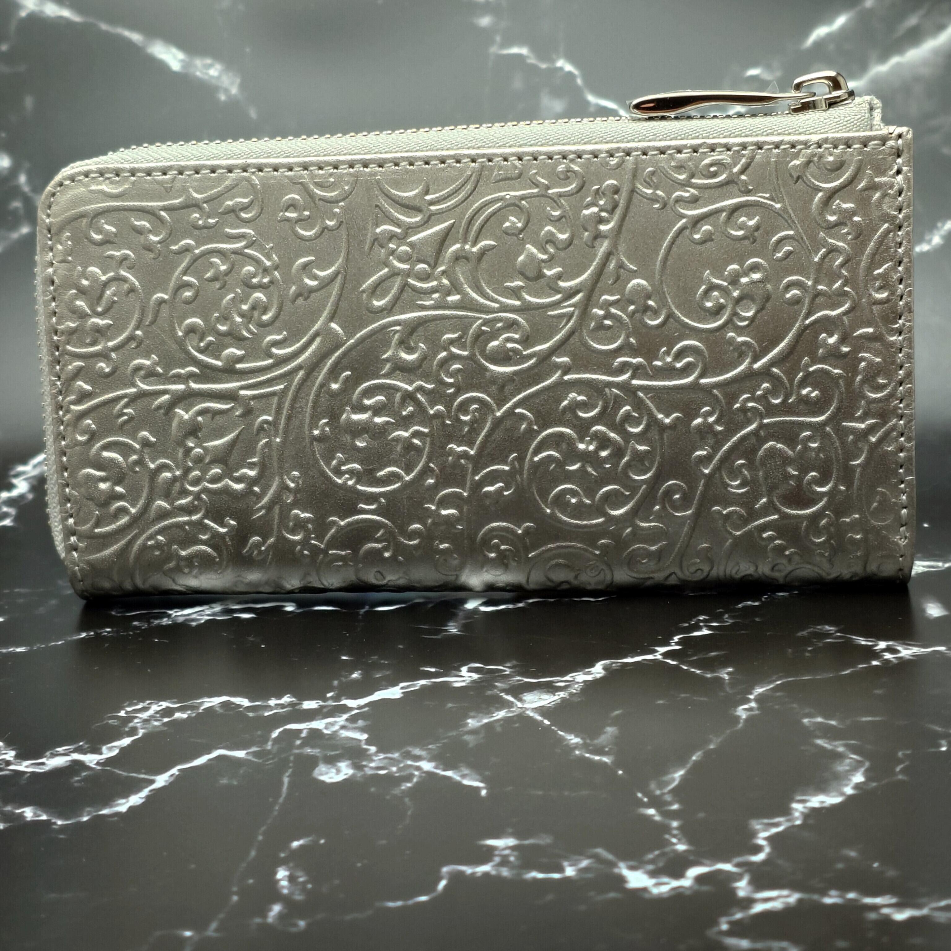 プラチナ箔がはなつ重厚感のあるシックな輝きが魅力の極小長財布。