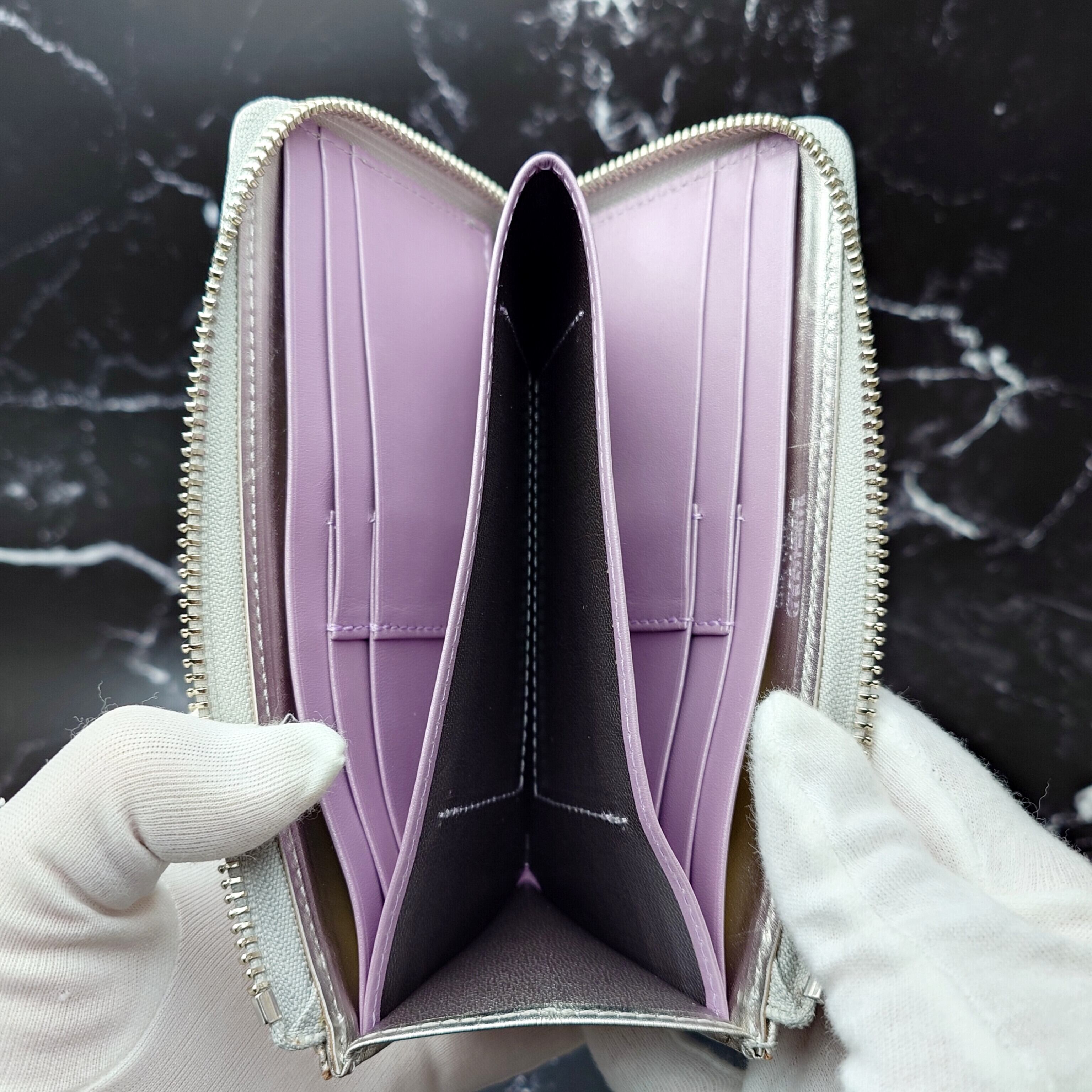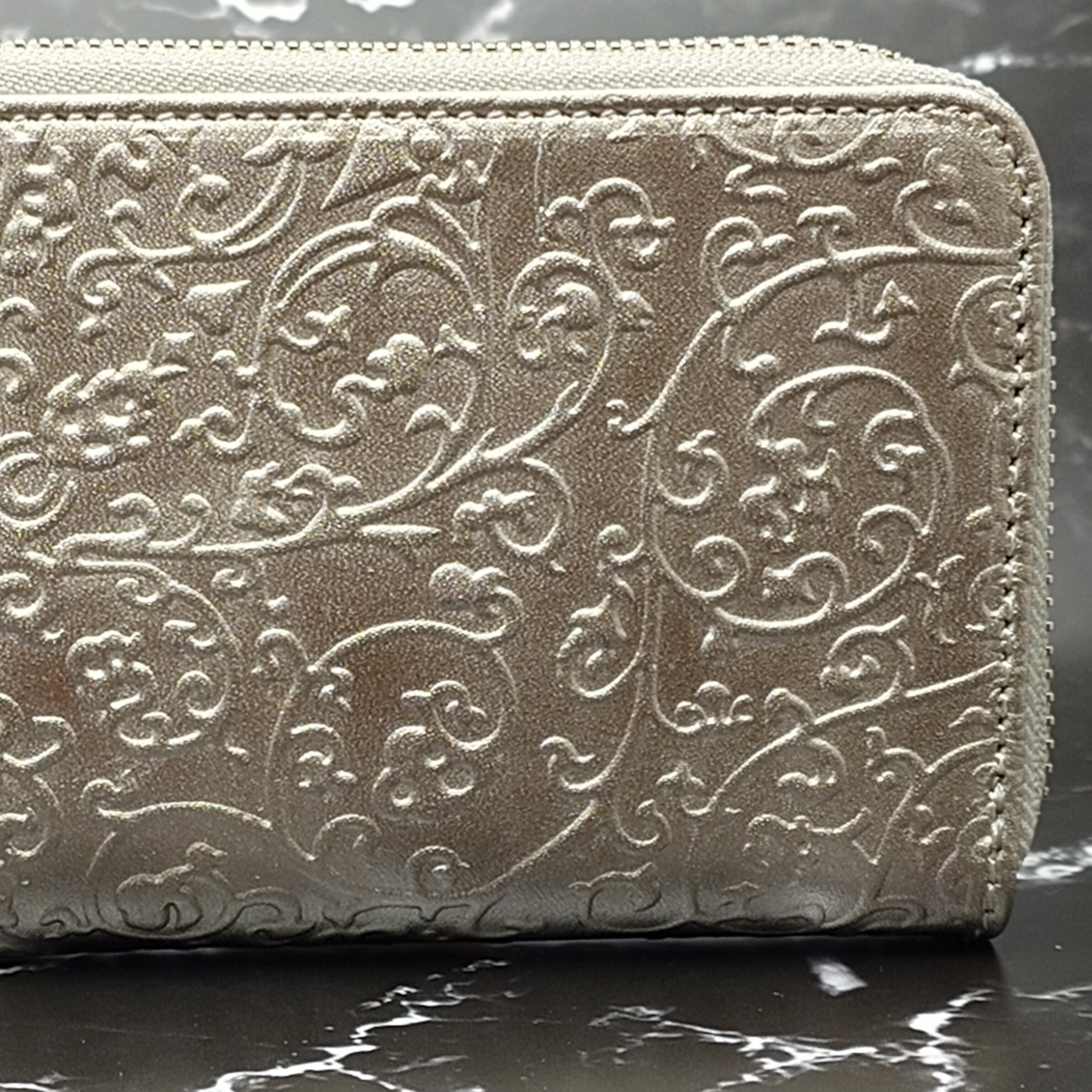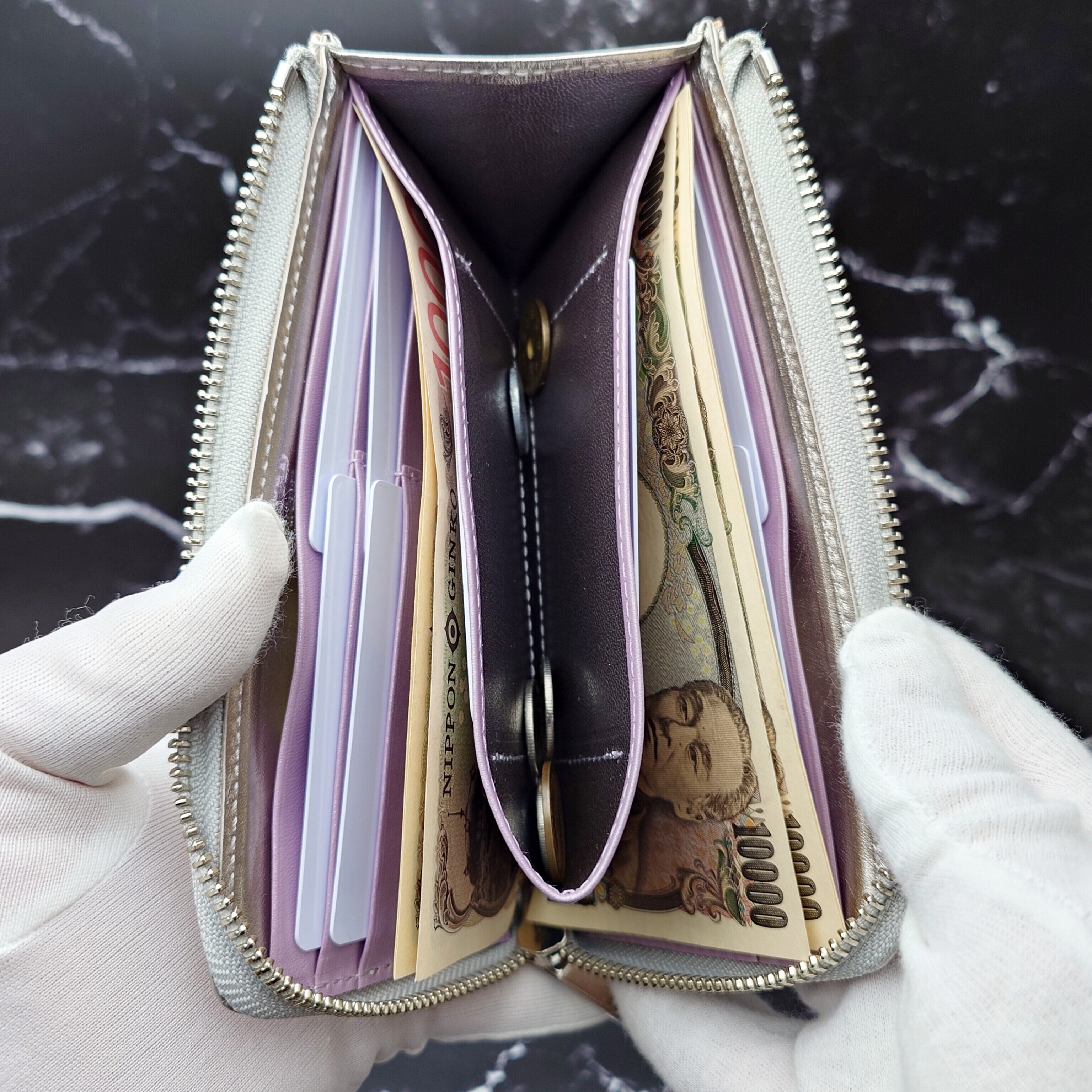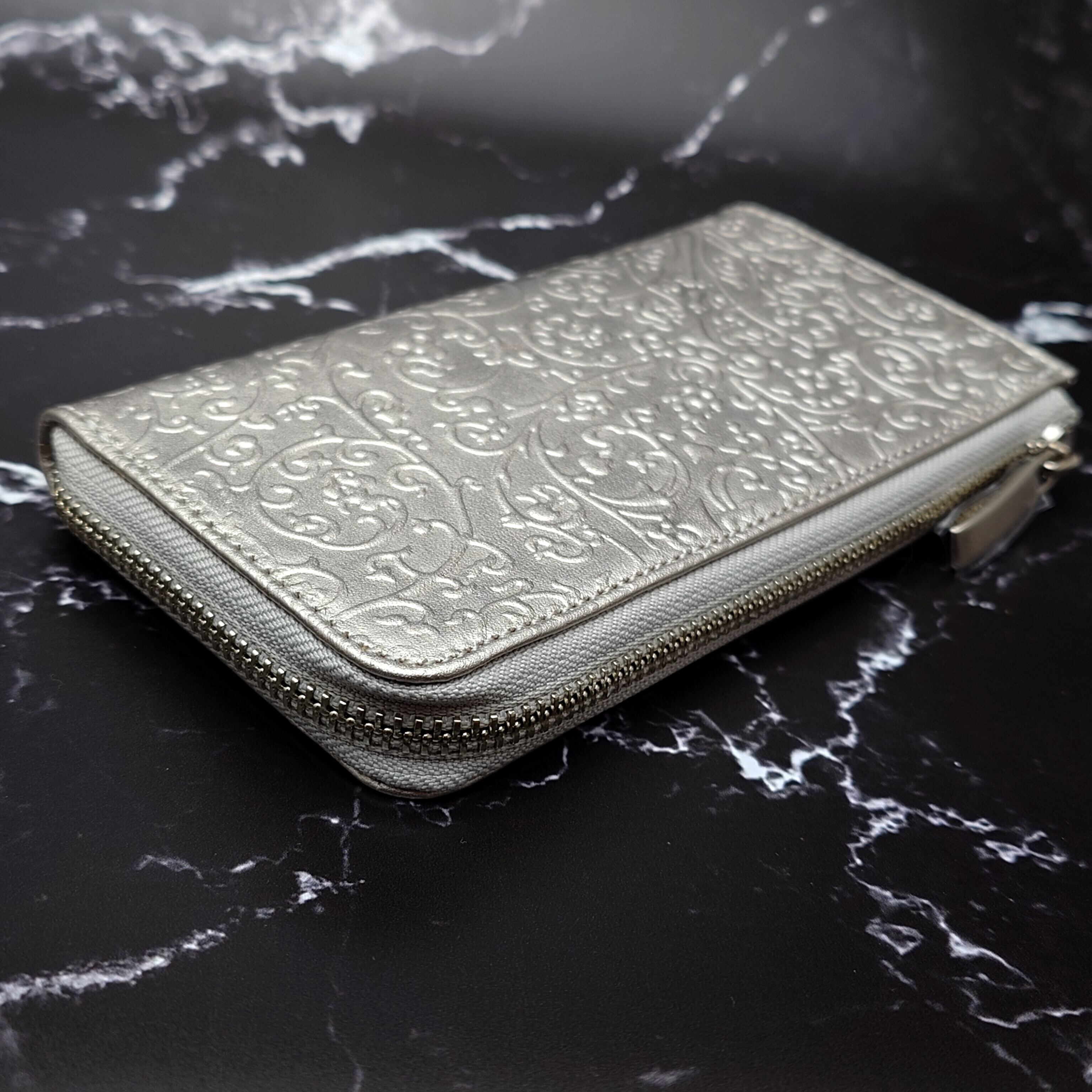 プラチナ箔がはなつ重厚感のあるシックな輝きが魅力の極小長財布。