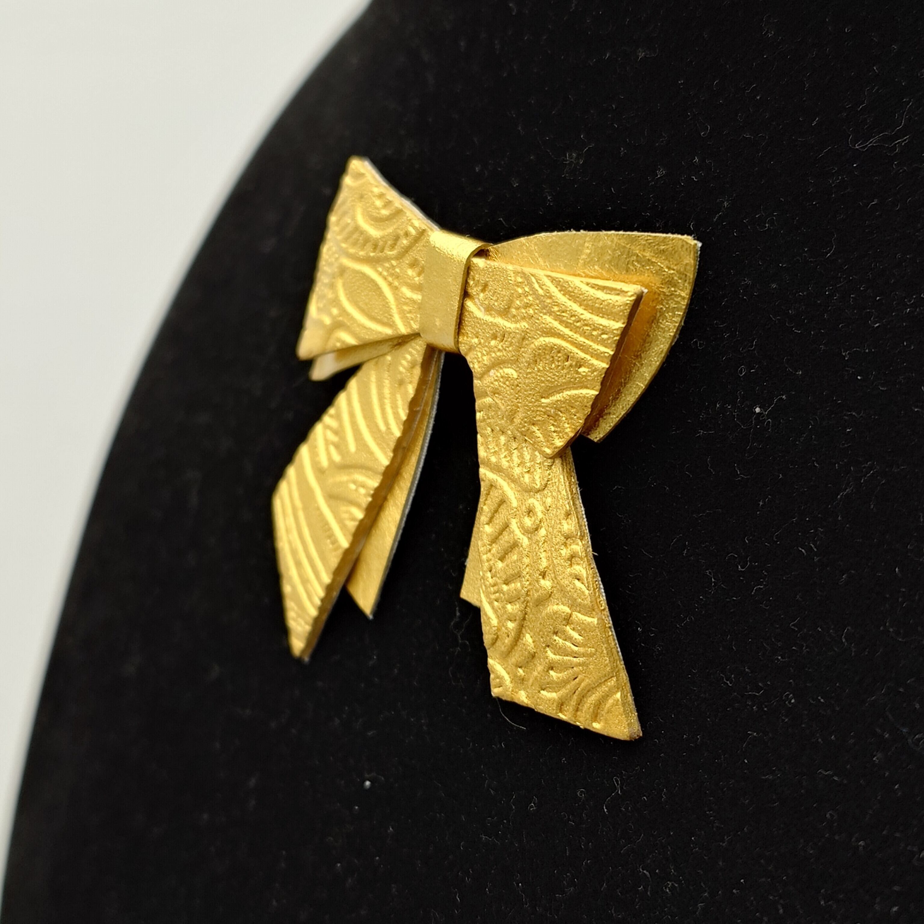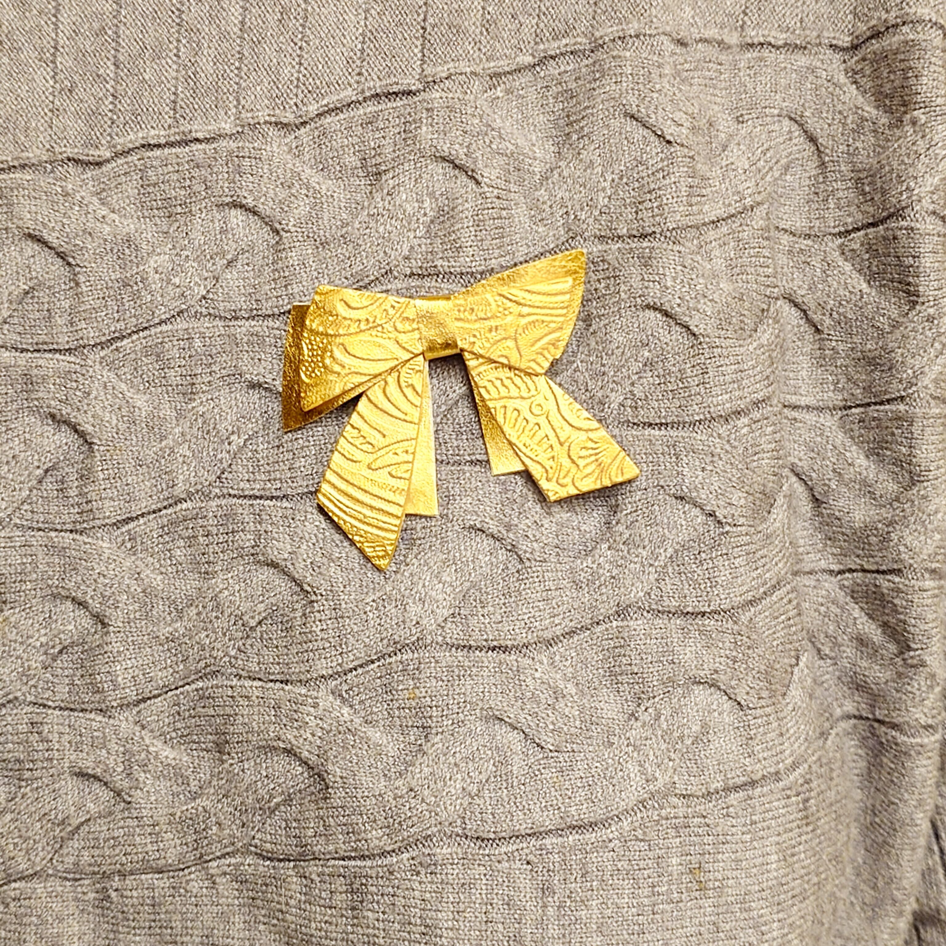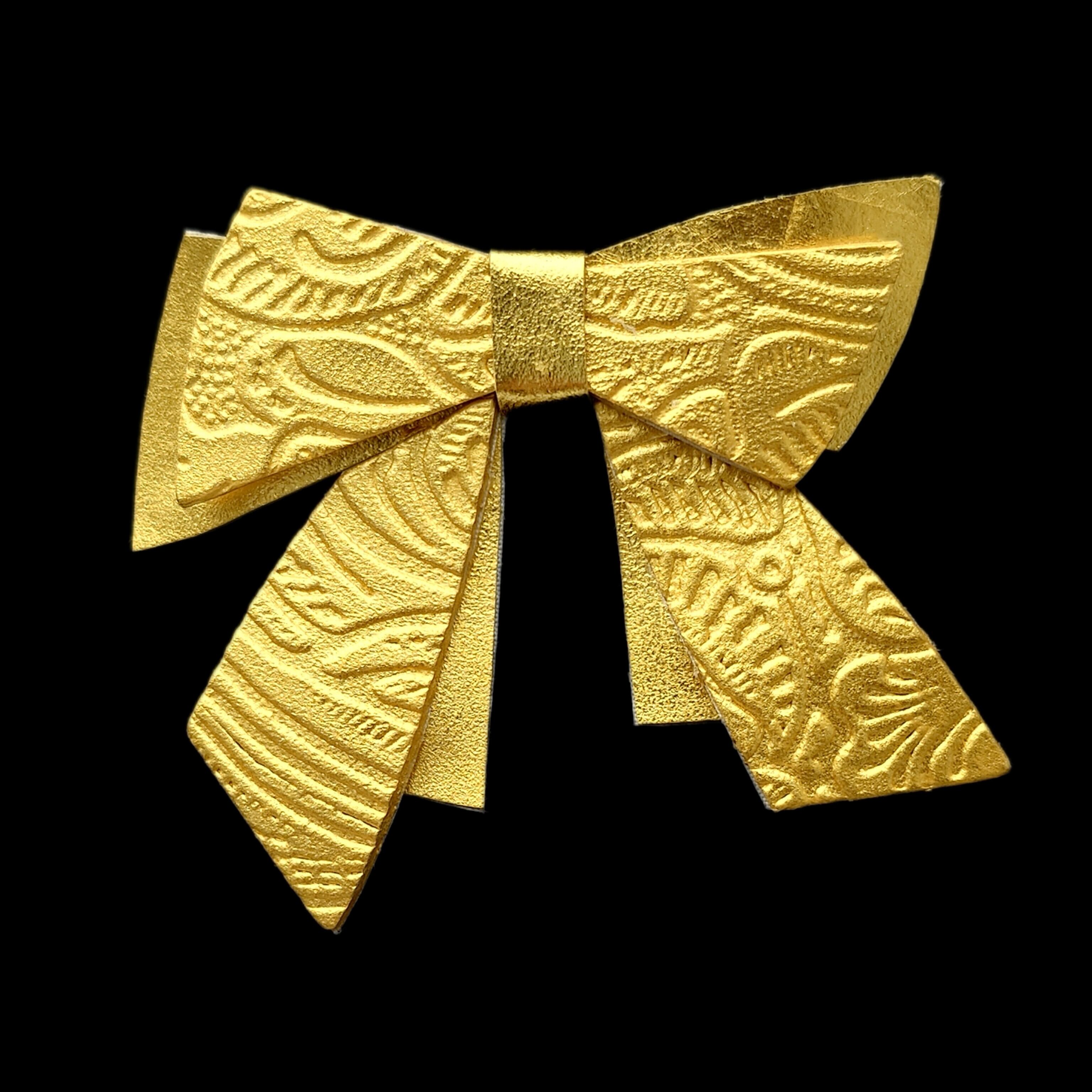 K24純金箔の優雅な輝きを纏ったゴールドリボン・フラワー柄/ブローチです。