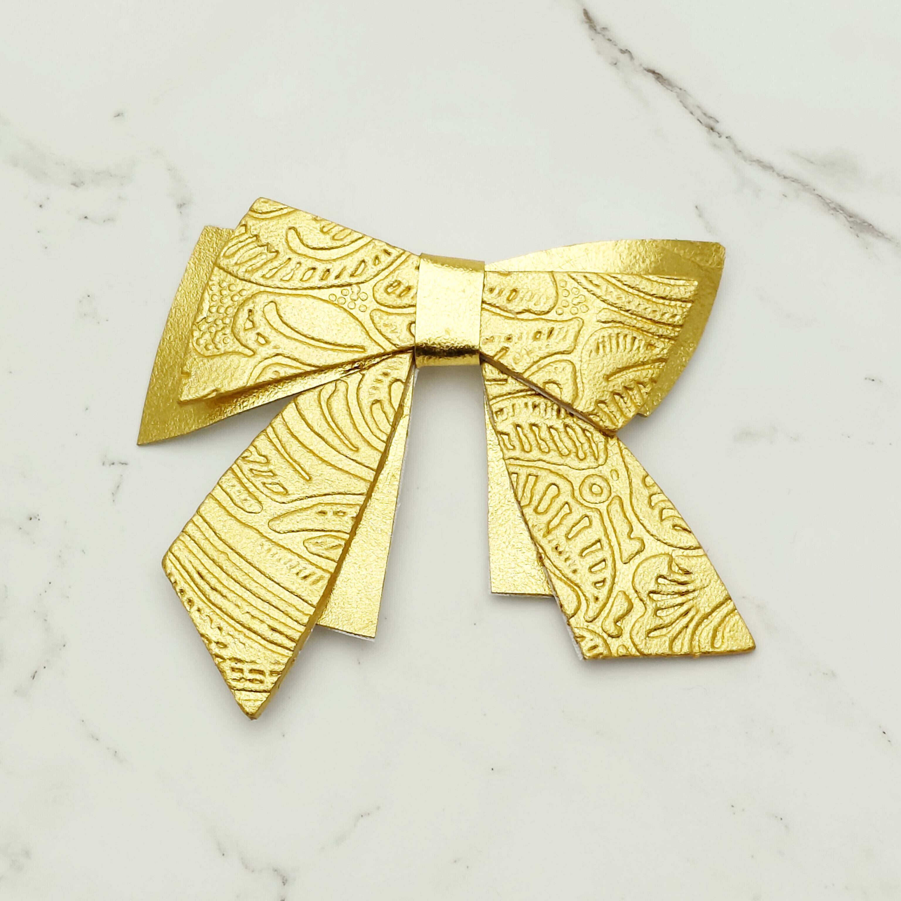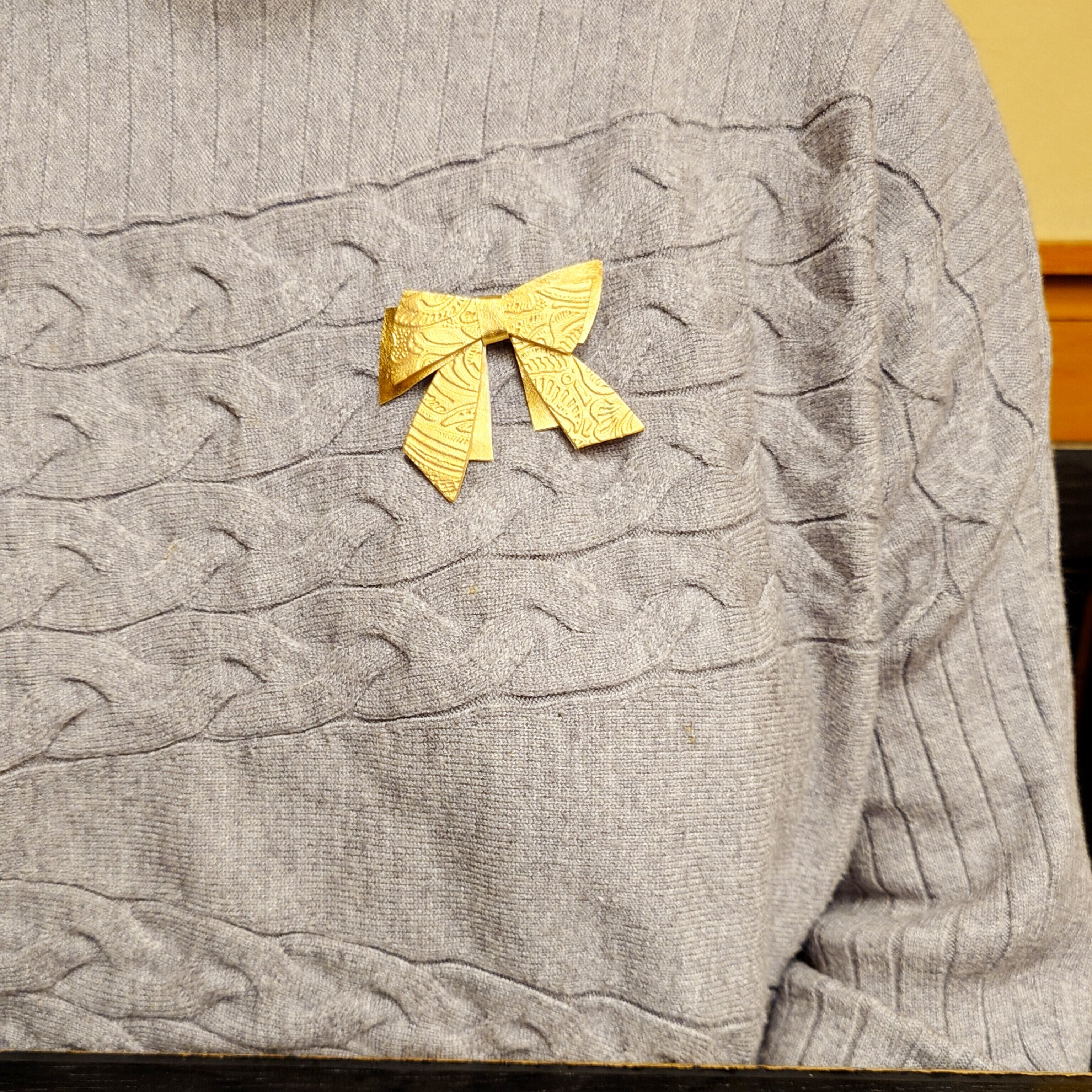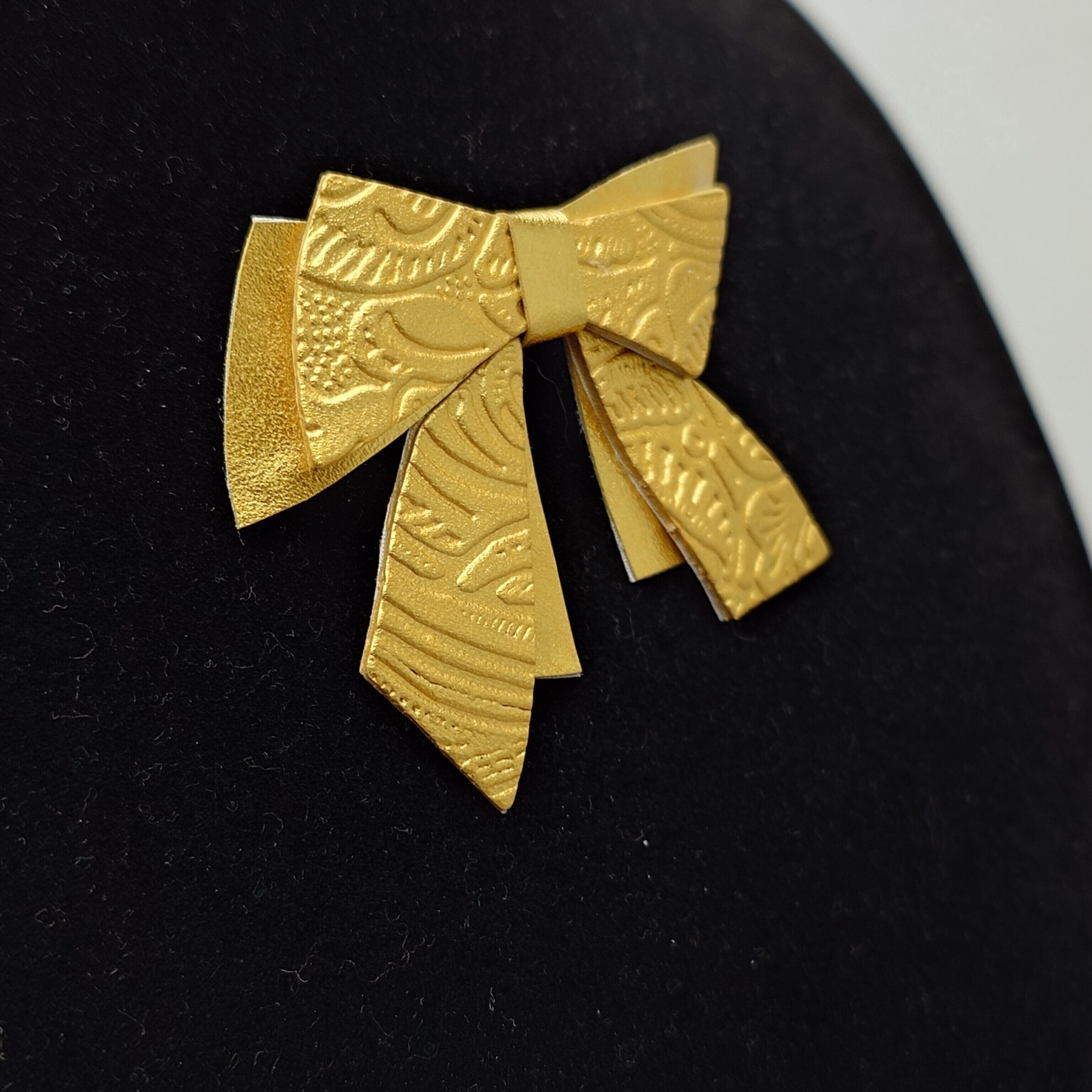 K24純金箔の優雅な輝きを纏ったゴールドリボン・フラワー柄/ブローチです。