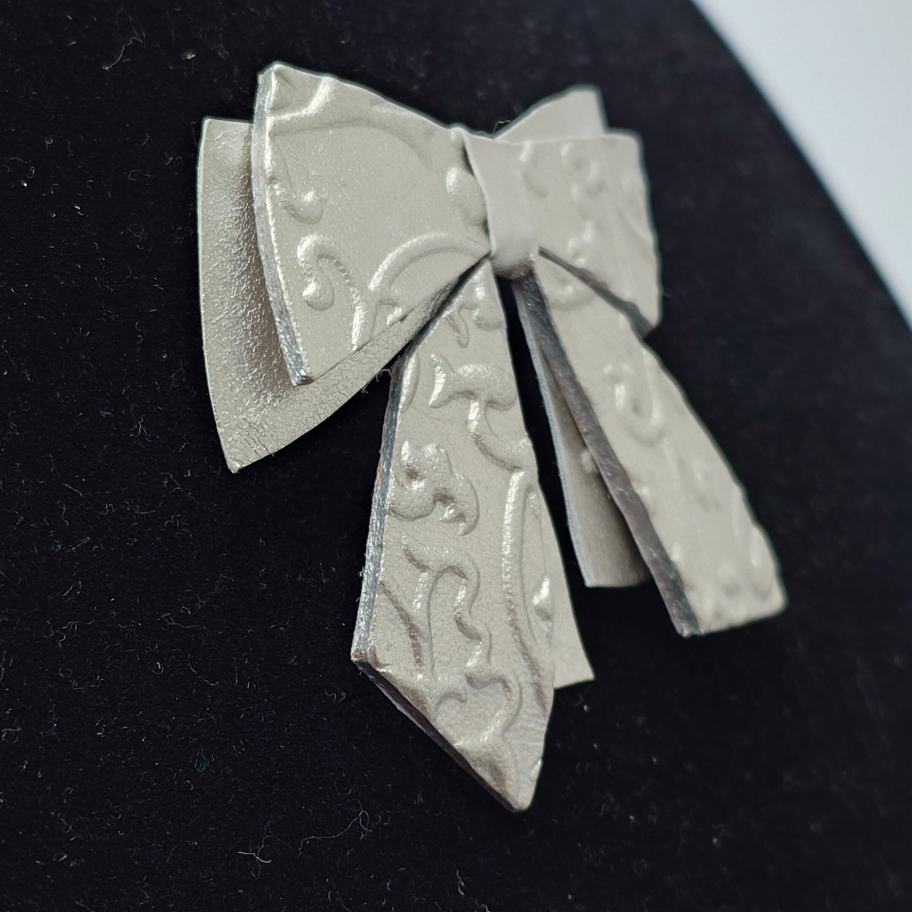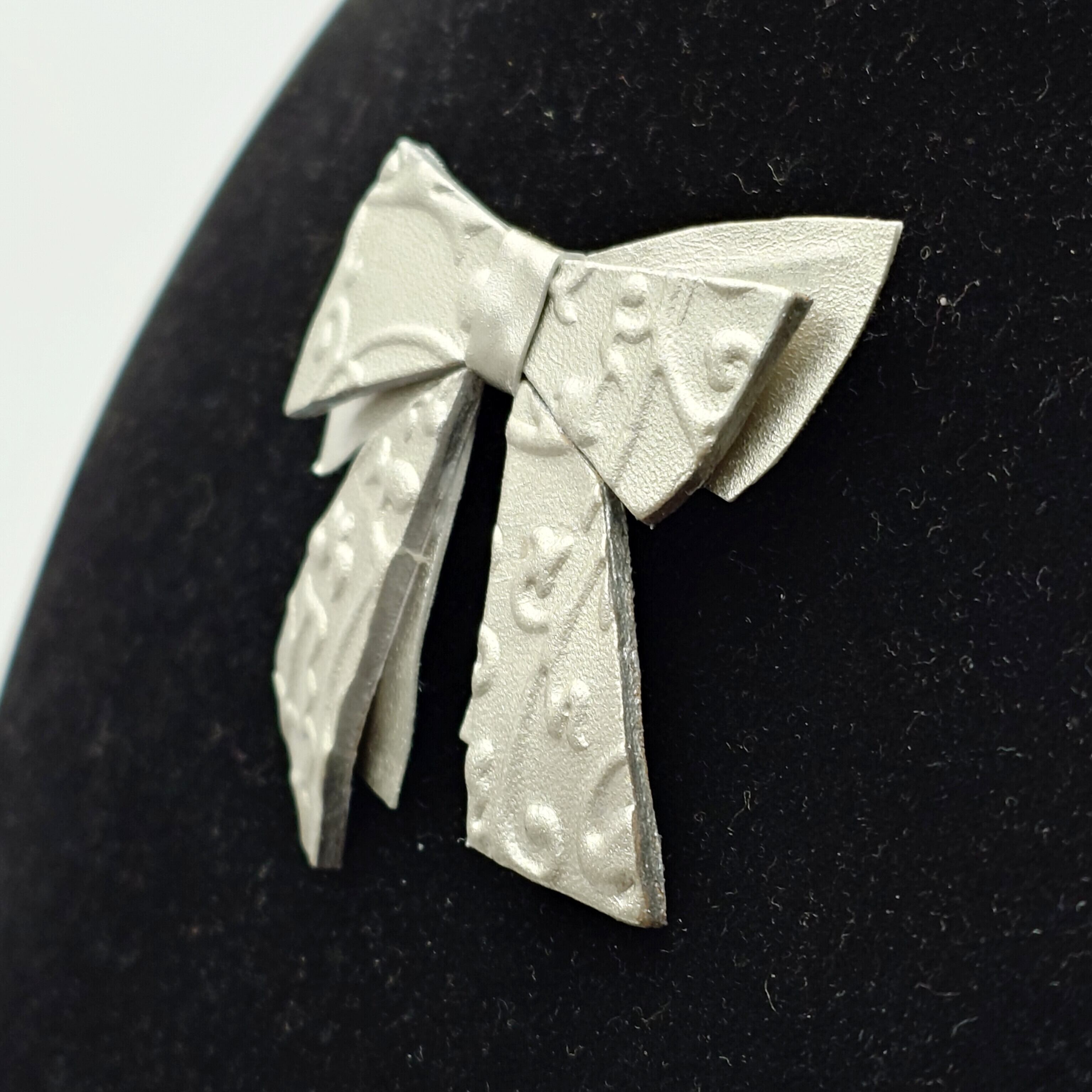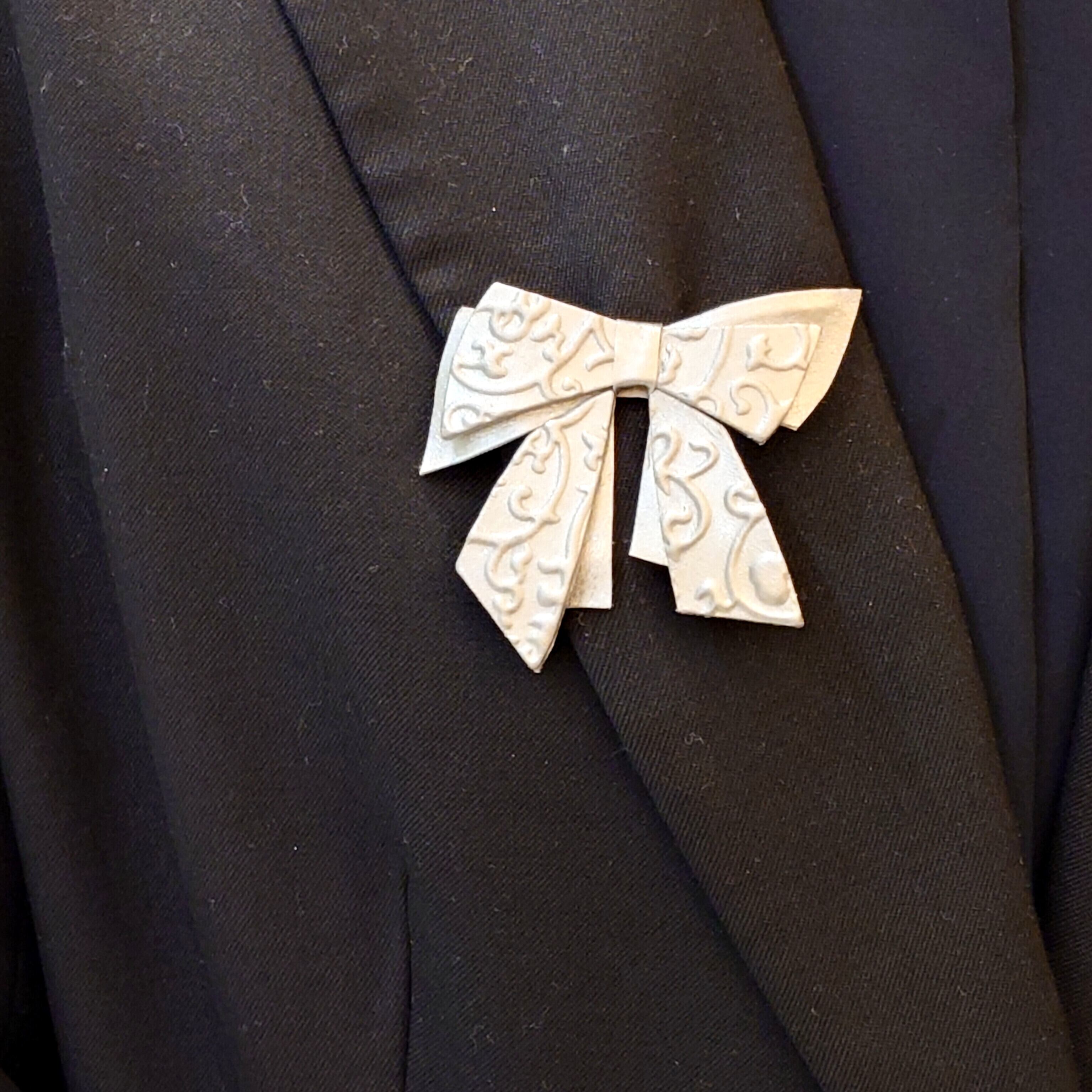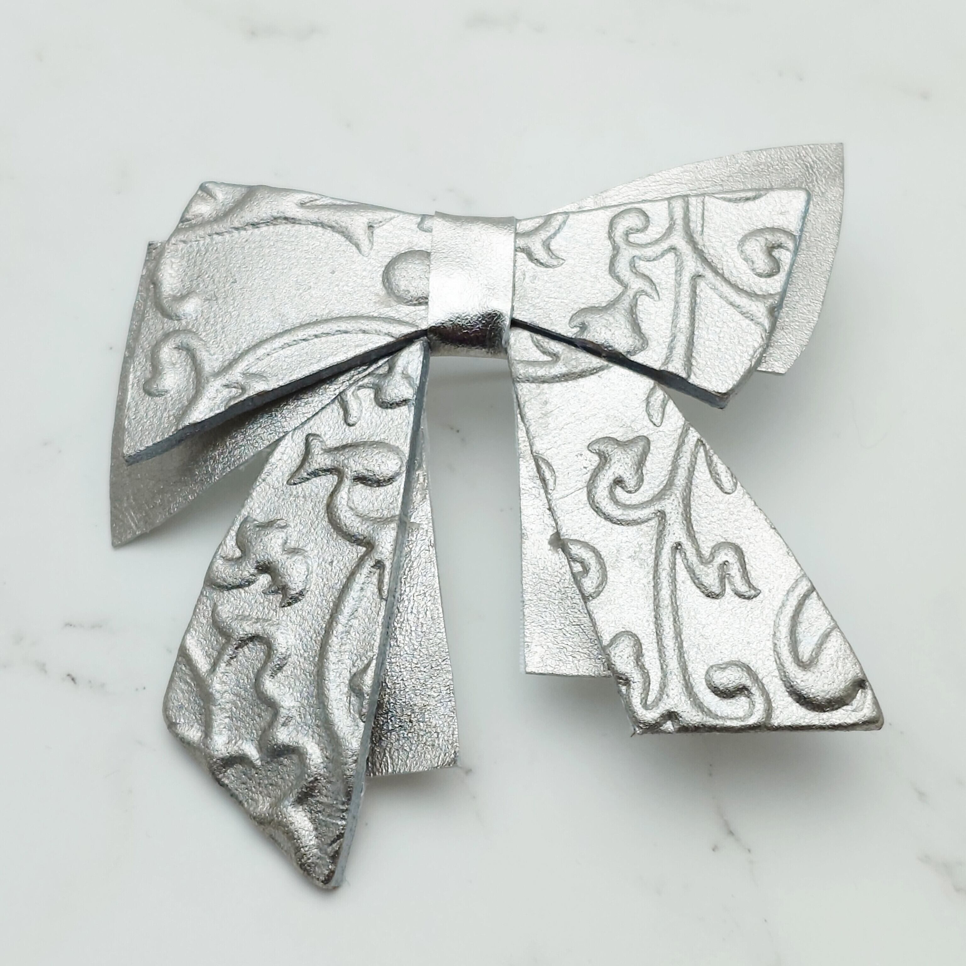 プラチナ箔の華やかな輝きを放つリボン・アラベスク柄/ブローチです。