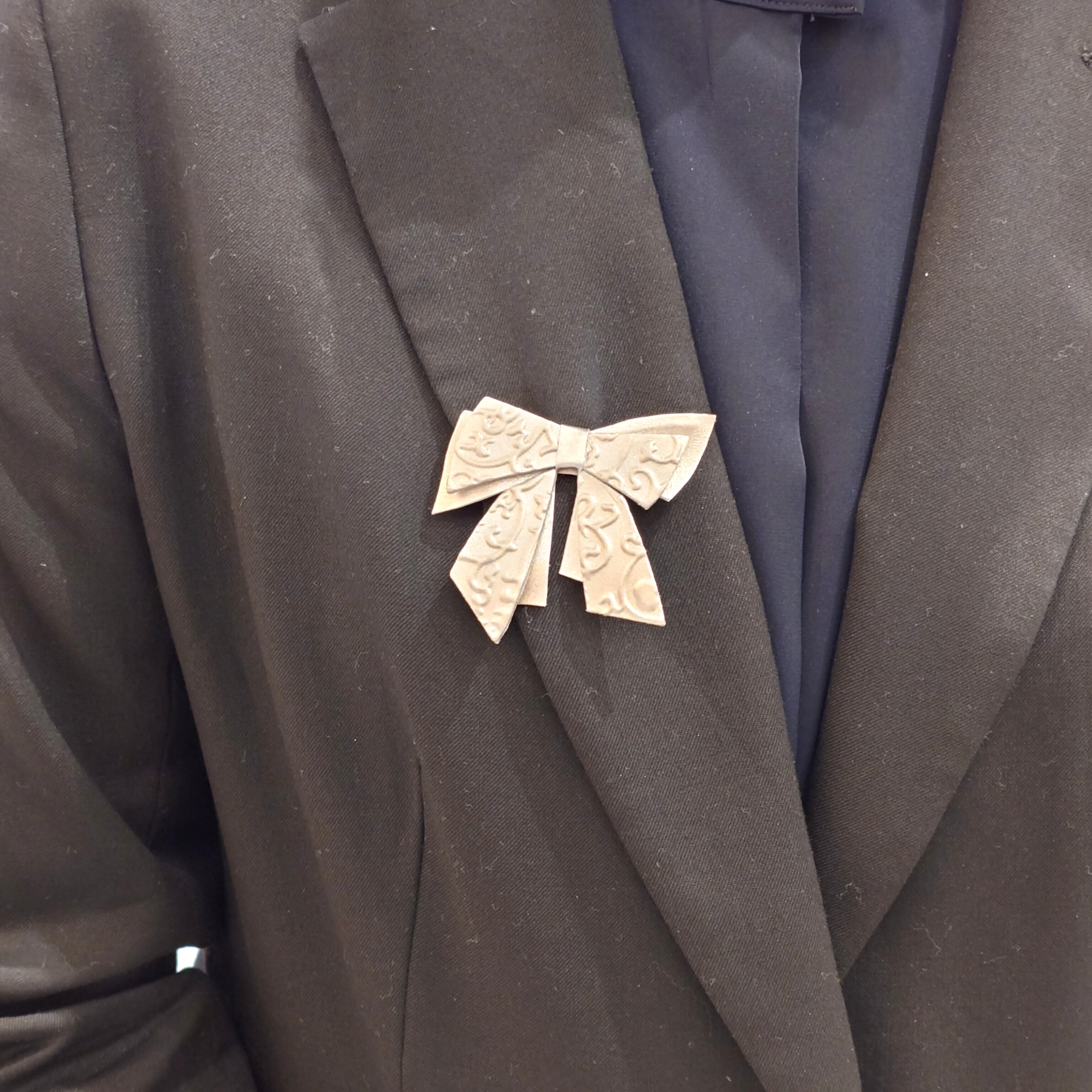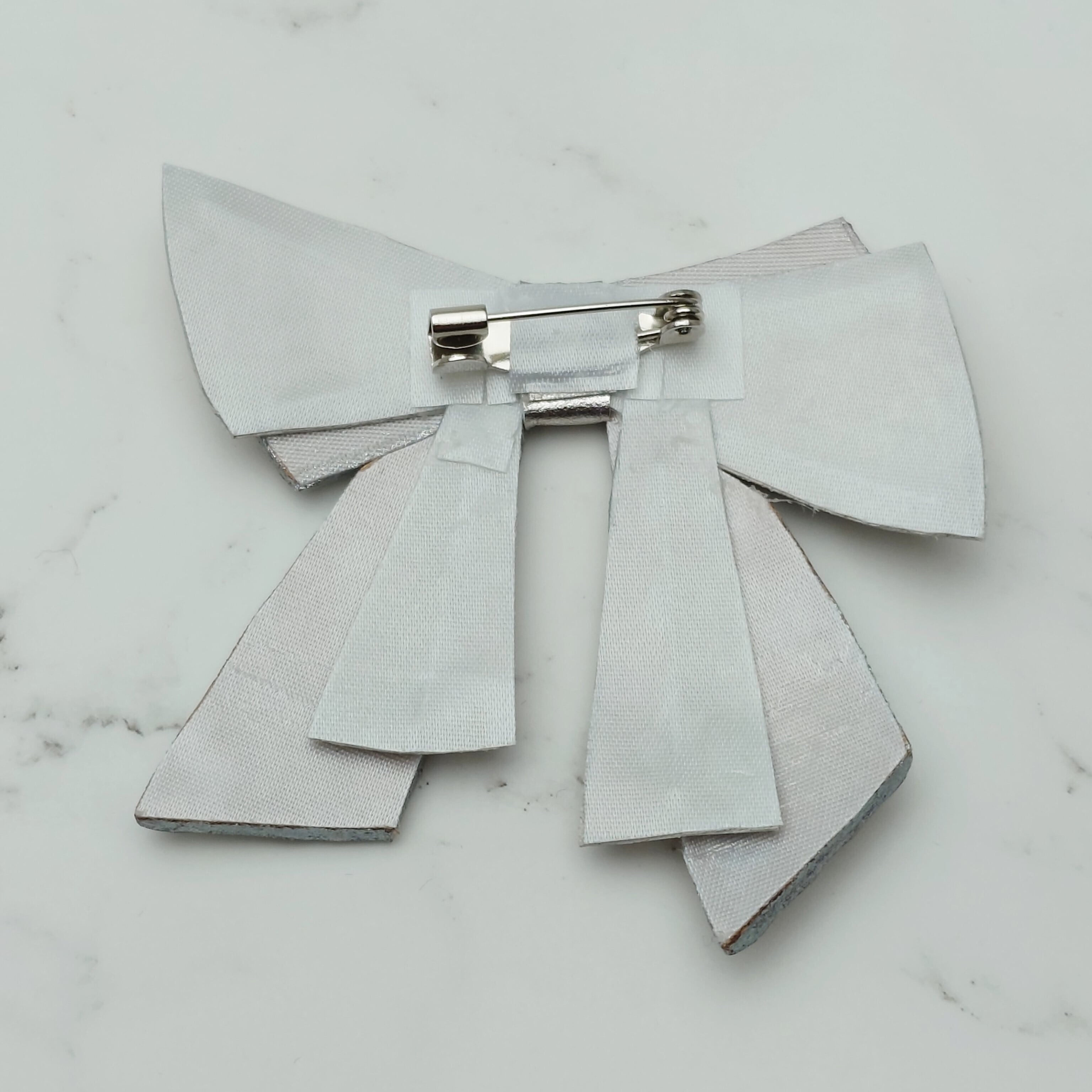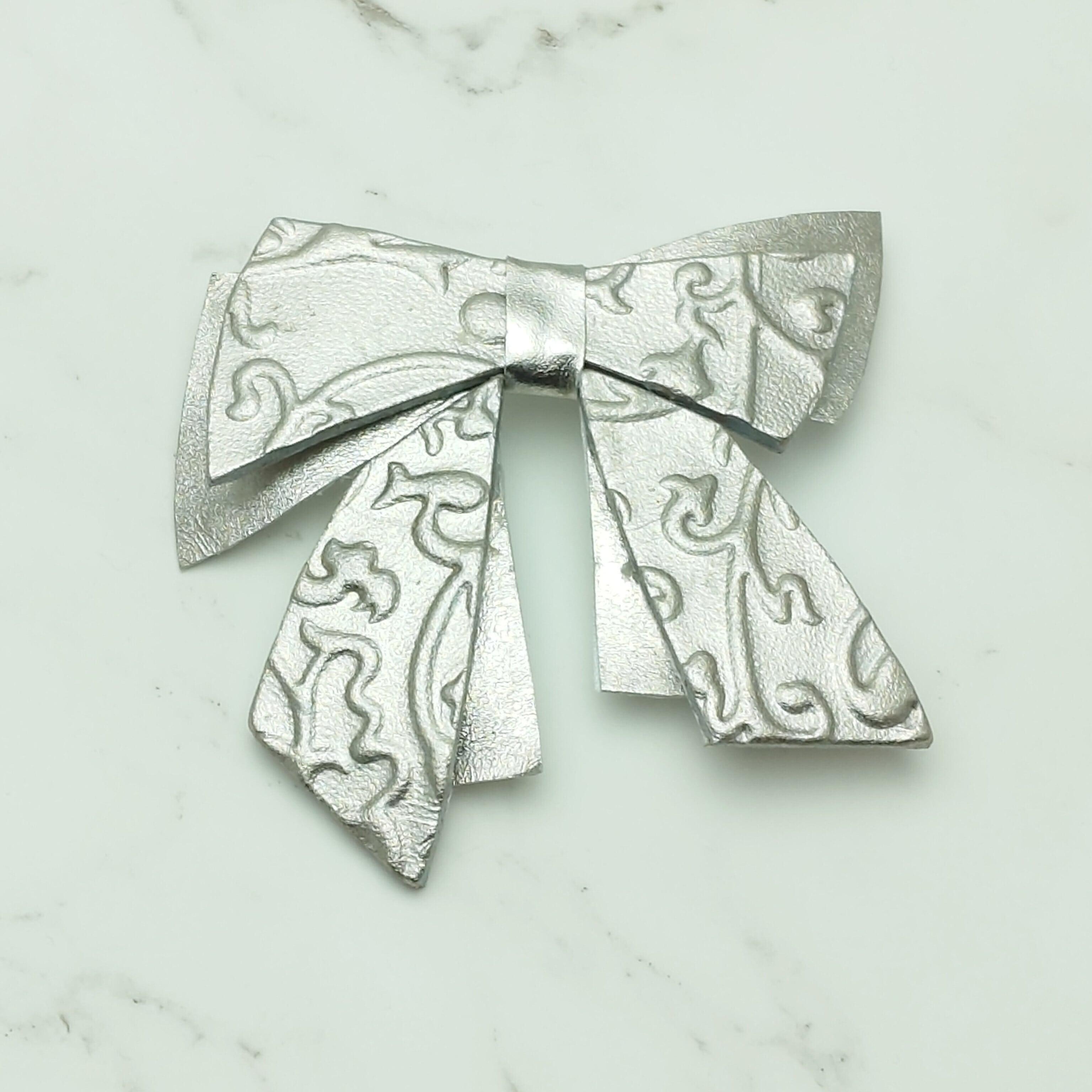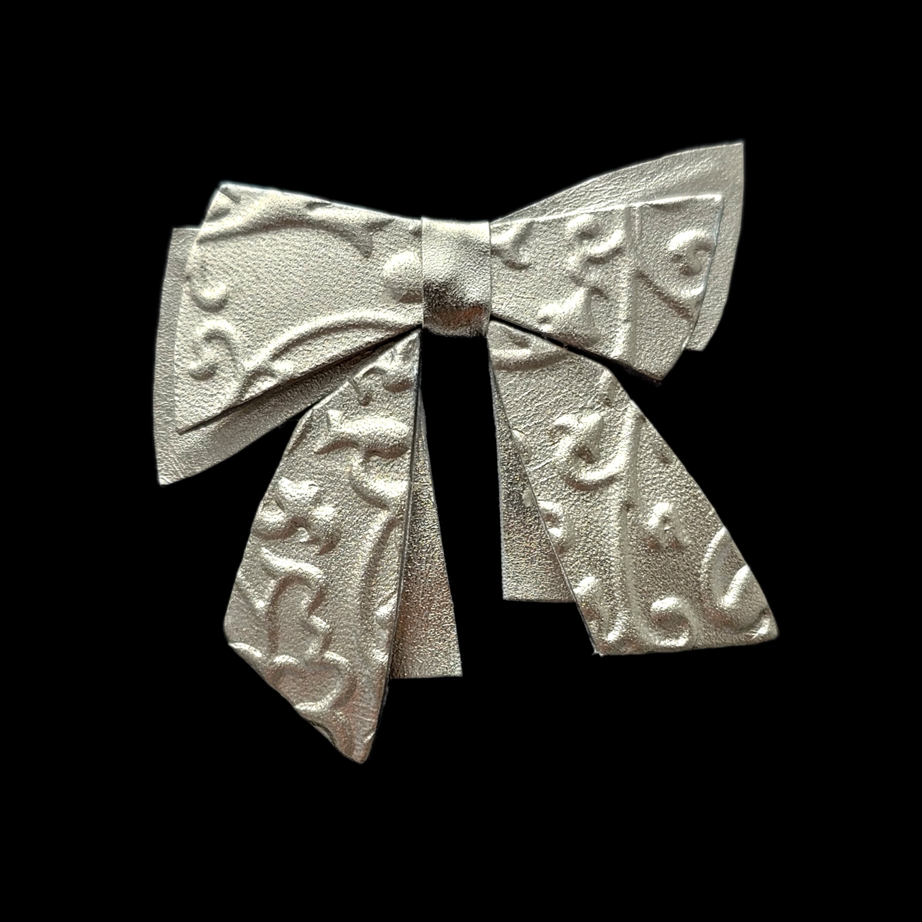 プラチナ箔の華やかな輝きを放つリボン・アラベスク柄/ブローチです。