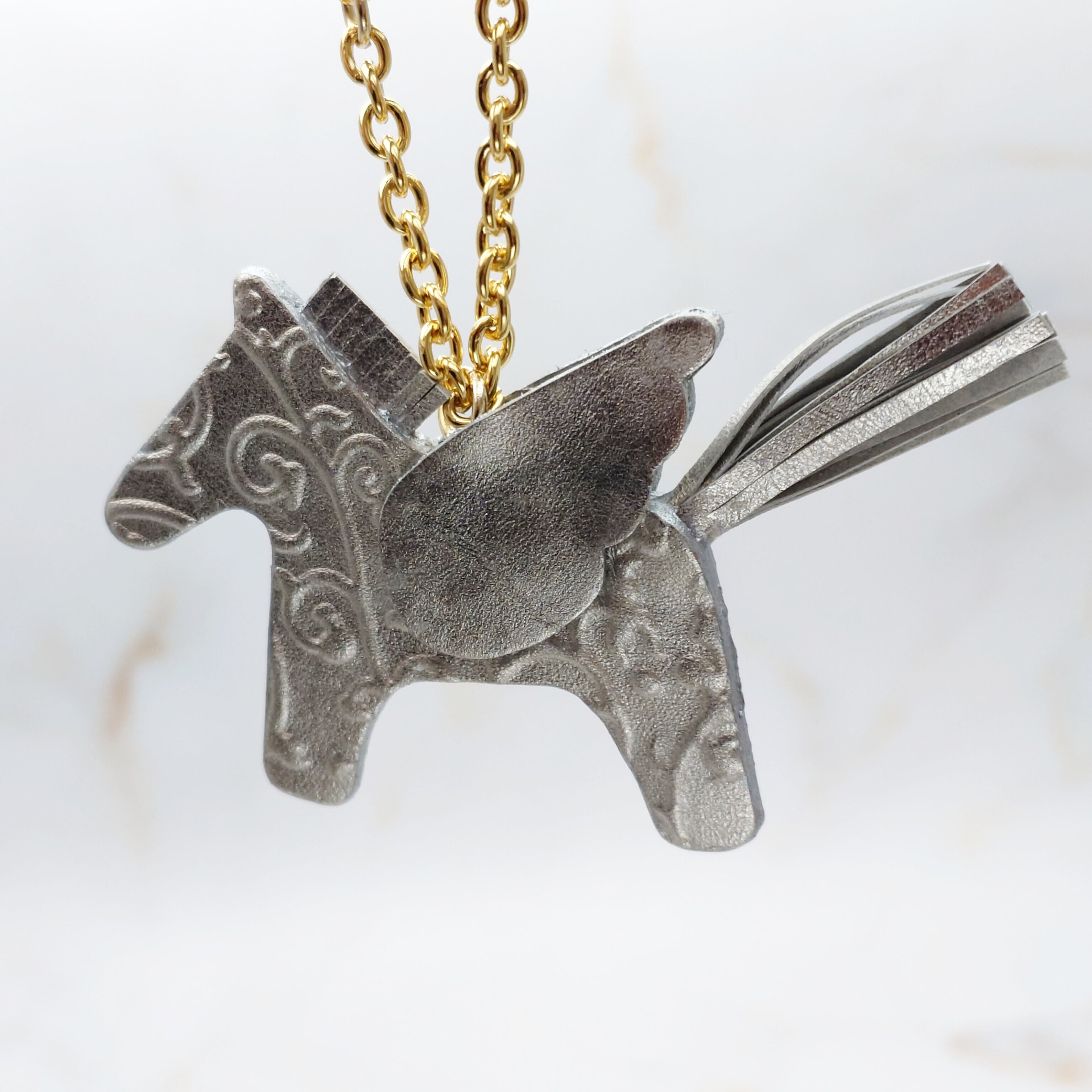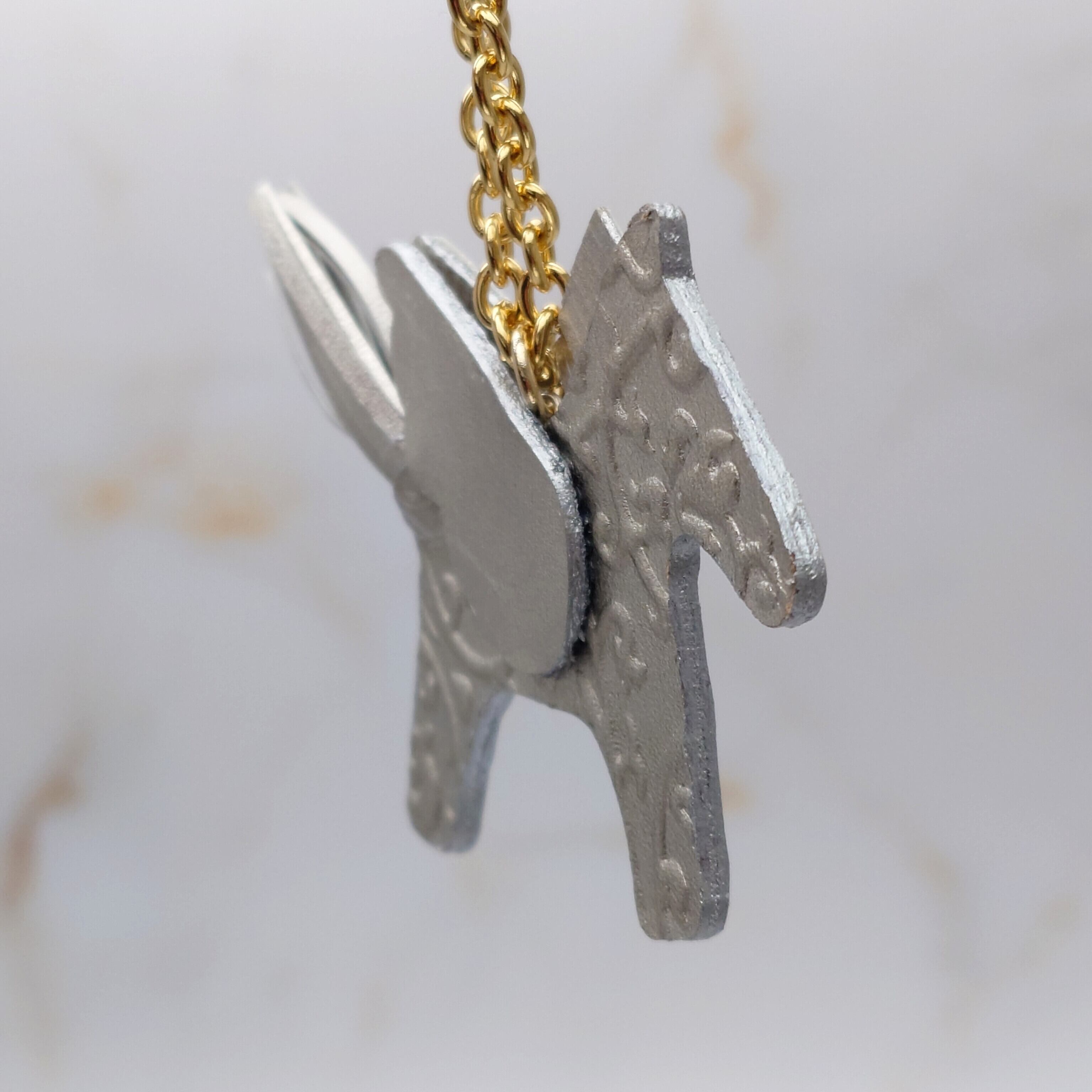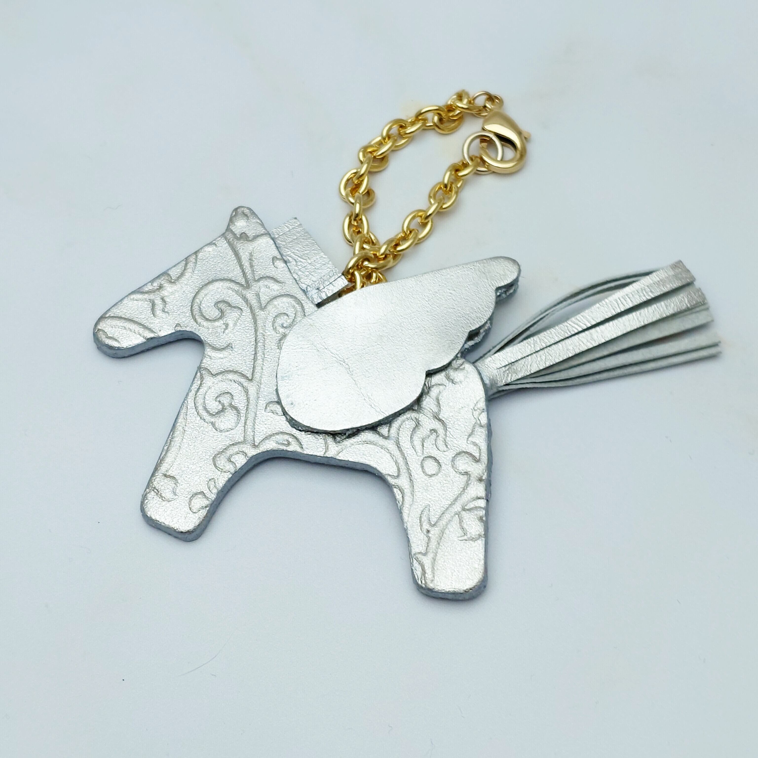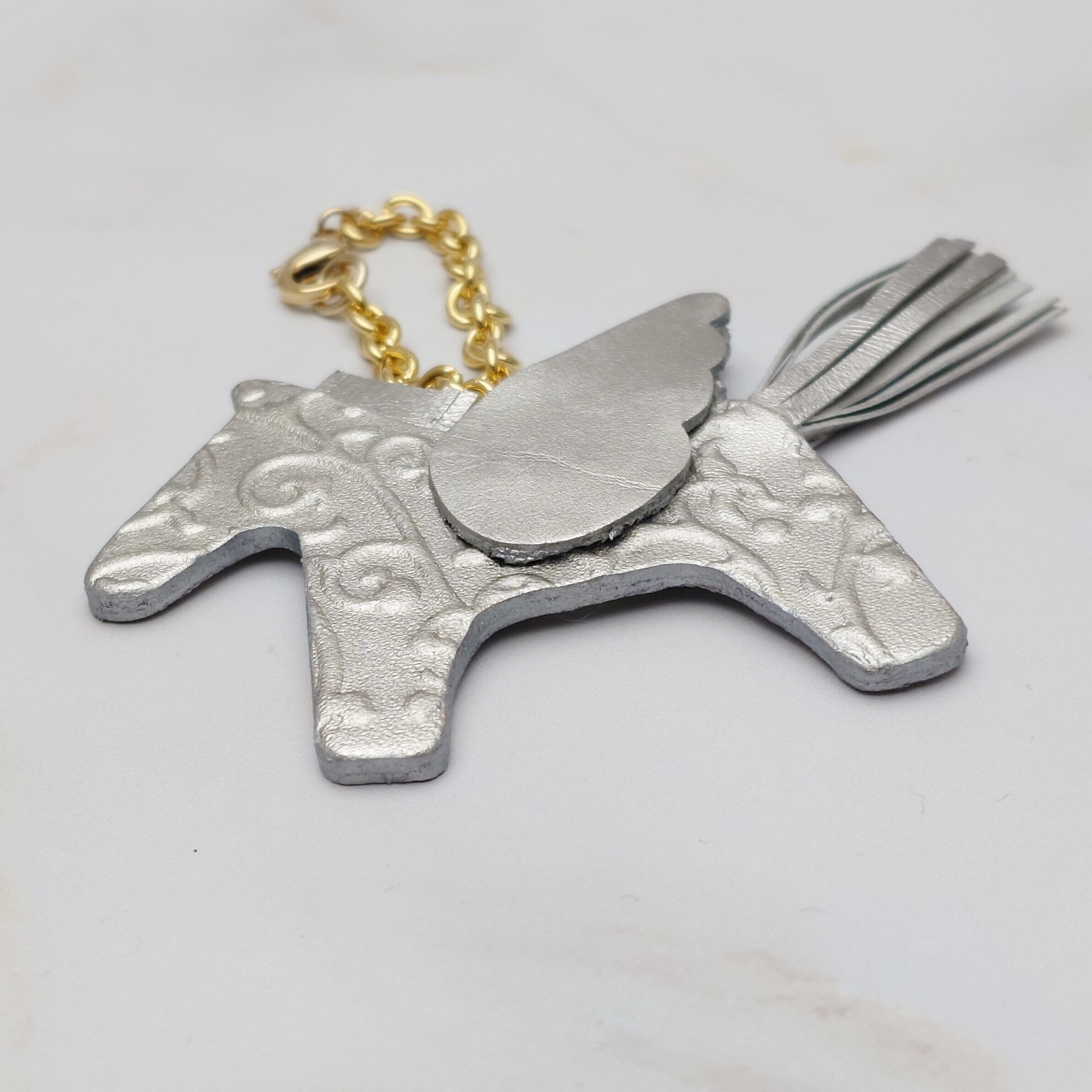 プラチナ箔の輝きが魅力的な幸せを運ぶペガサスチャーム/アラベスク柄です。