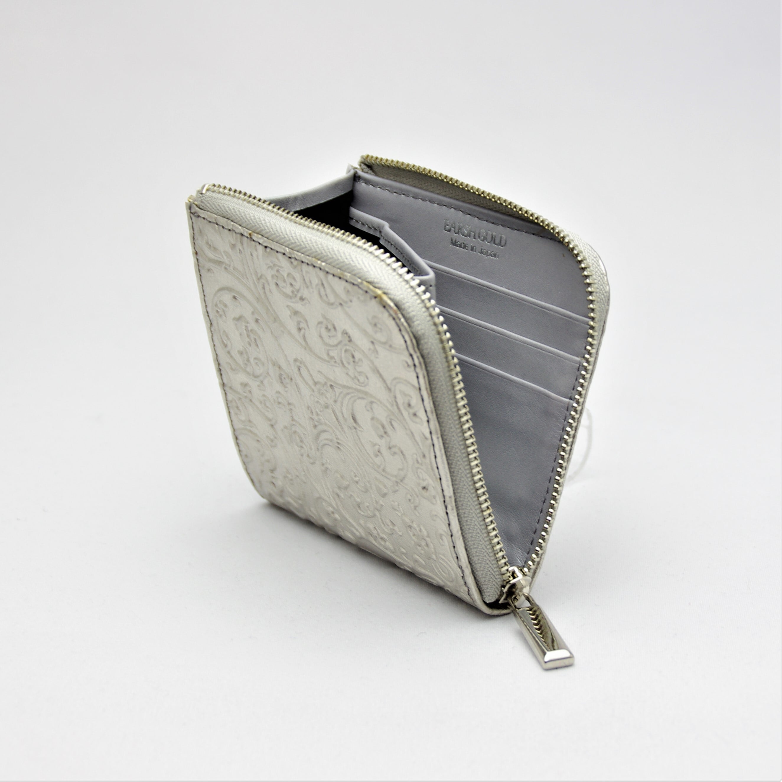 純プラチナ箔を使ったアラベスク柄のL字ファスナー ハーフウォレット