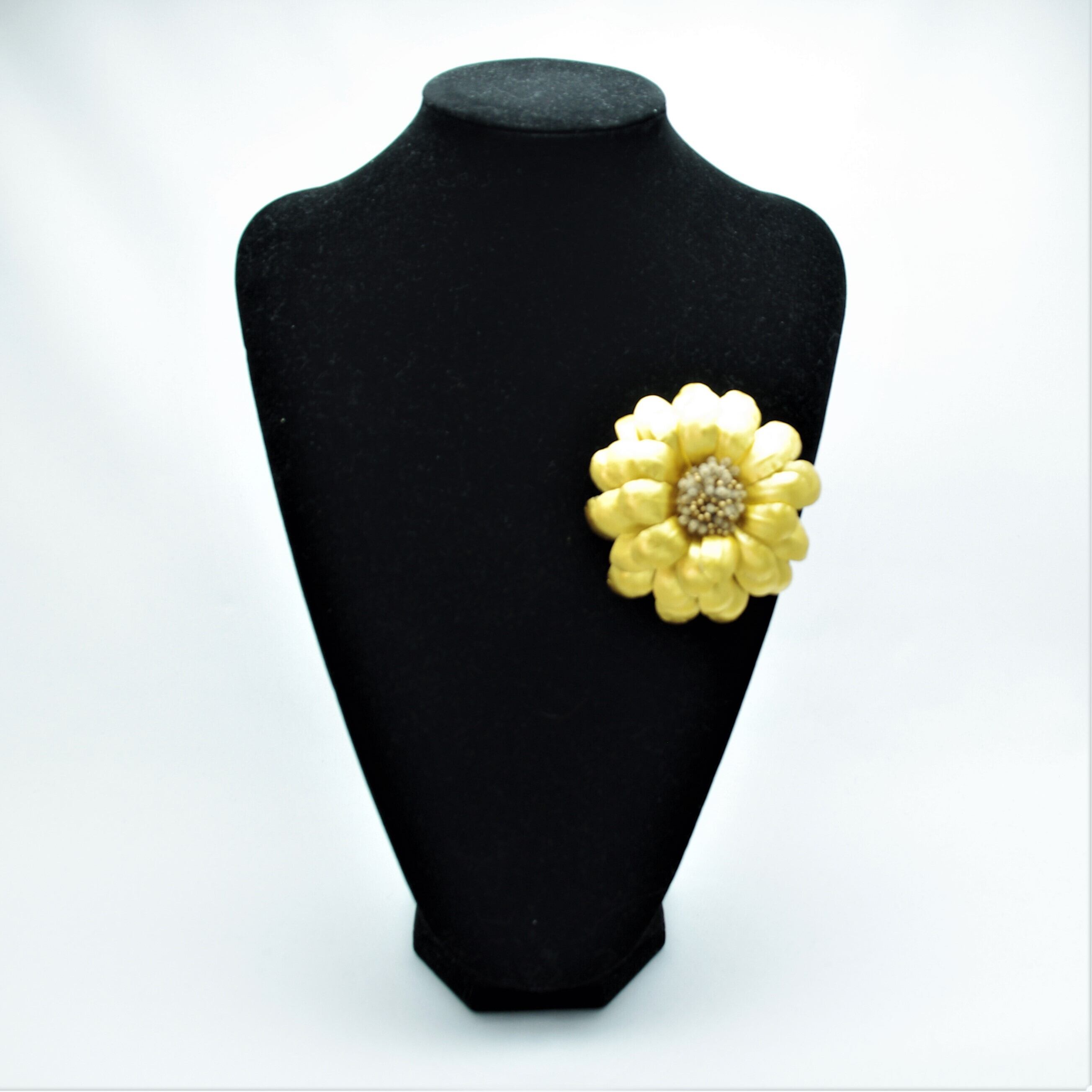 ポンポンダリアの花をモチーフにしたK24金箔のコサージュ