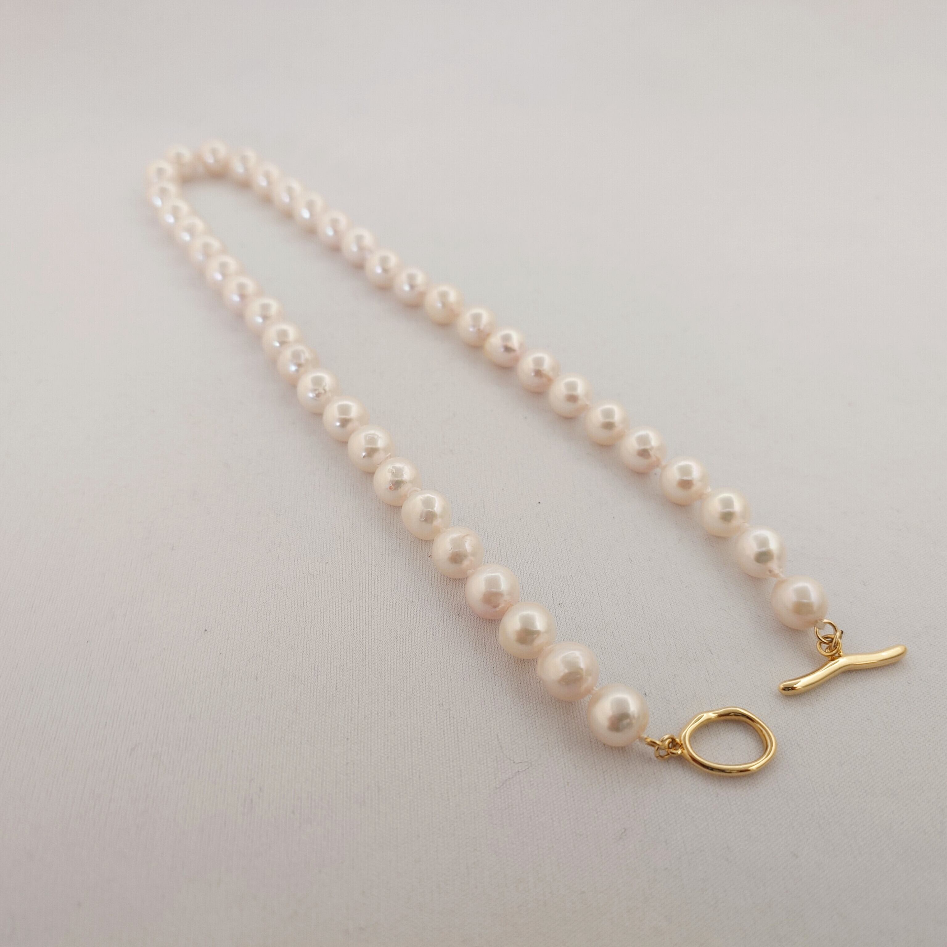 大きさ、色、光沢において、とても魅力的なパールネックレス。エレガントな輝きが胸元を彩ります。